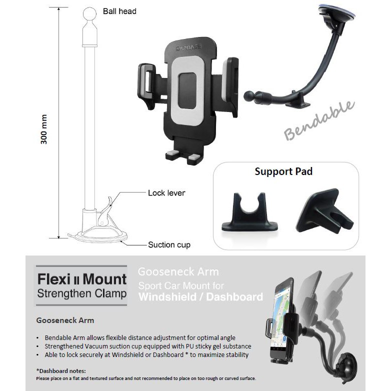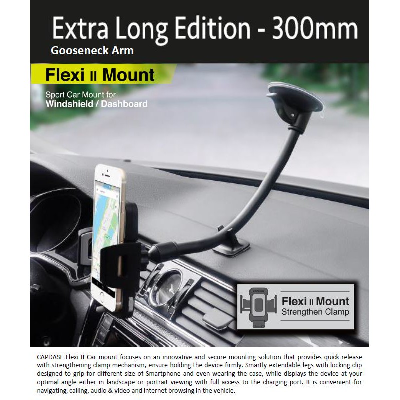 Capdase Sport Car Mount Flexi II (Extra-Long 300mm) Gooseneck Arm for Windshield/Dashboard