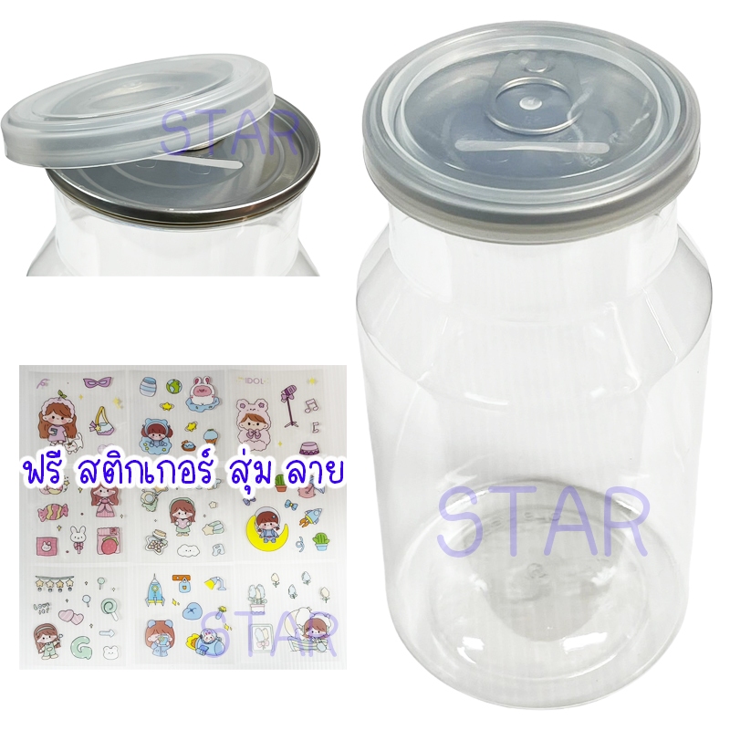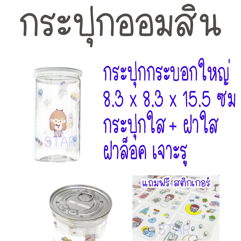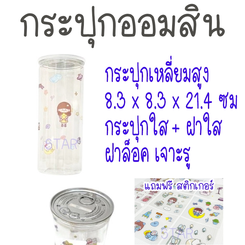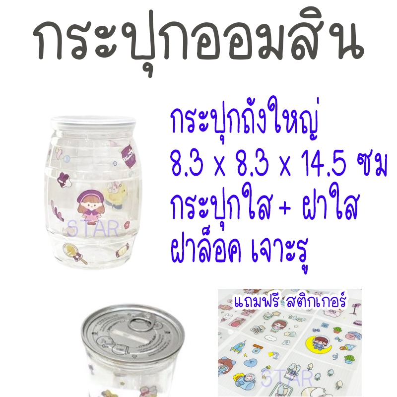 กระปุกออมสิน ฝาดึง สีใส แถมสติกเกอร์ ทรงถังใหญ่ กระปุกออมสินสี่เหลี่ยม พลาสติก DIY