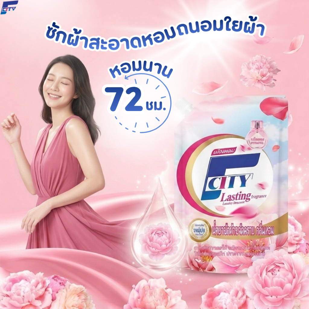 【ซื้อ2แถม1】【1.8L】น้ำยาซักผ้า F-City กลิ่นดอกไม้ หอมติดทนยาวนาน72ชั่วโมง ขจัดคราบสกปรกได้อย่างล้ำลึก