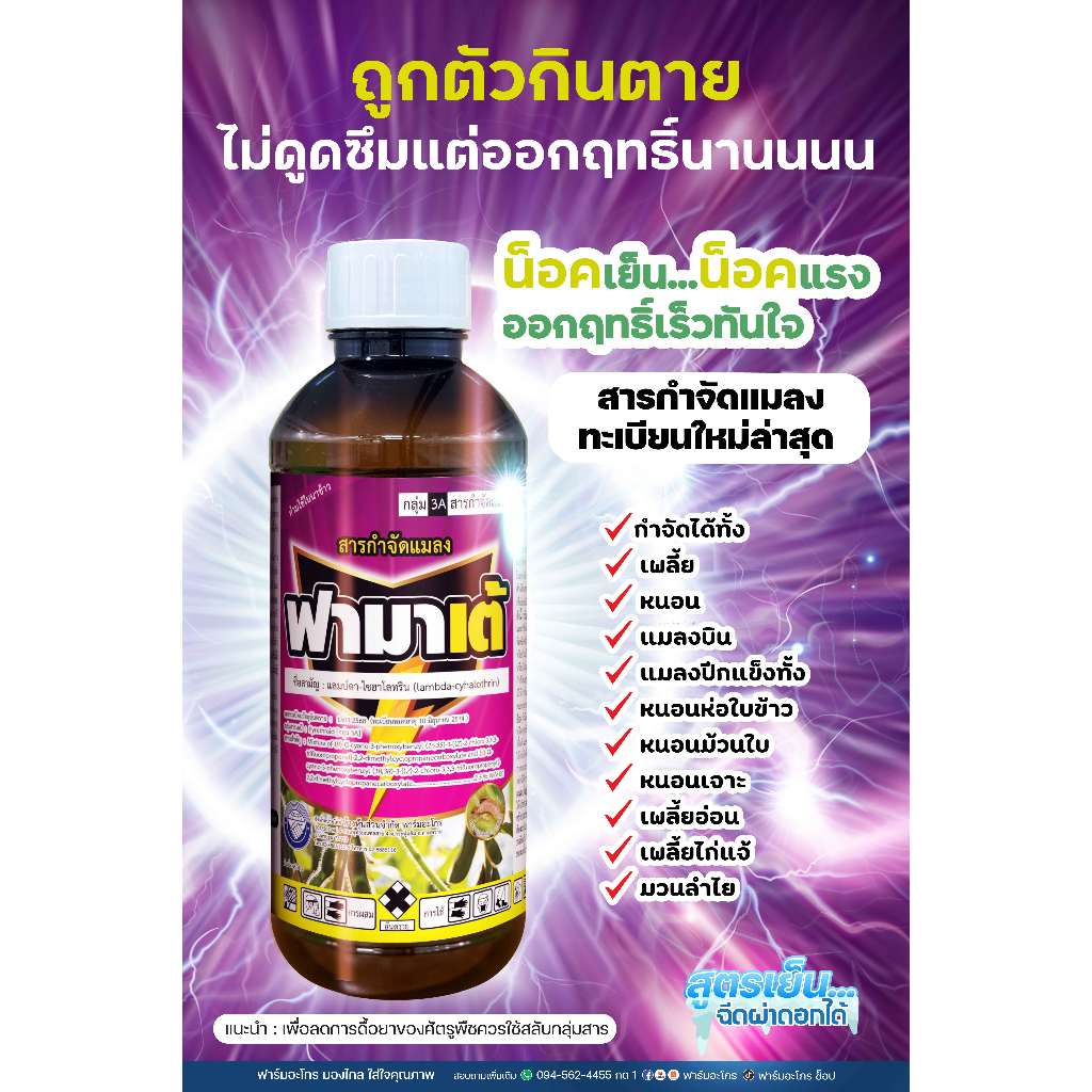 ฟามาเต้ แลมป์ดา-ไซฮาโลทริน ยาแมลง สูตรเย็น เข้มข้น น็อคเร็วเเรง ได้ทั้งหนอนและเพลี้ย