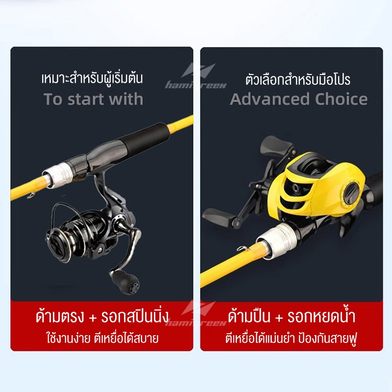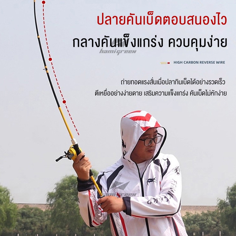 Hamigreen ชุดคันเบ็ดตกปลา เบ็ดตกปลาครบชุด ชุดรอกตกปลา คันเบ็ดคาร์บอน 5ft/6ft/7ft ครบชุด คันเบ็ดตกปลา รอกโลหะ AC2000