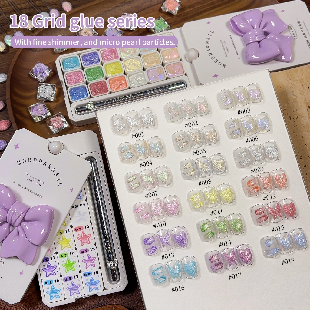 MORDDA ชุดยาทาเล็บเจล Pearl White Glitter 18 สี สามารถใช้สำหรับการเพ้นท์เล็บแบบ 3 มิติ และเหมาะสำหรับใช้ในร้านทำเล็บ