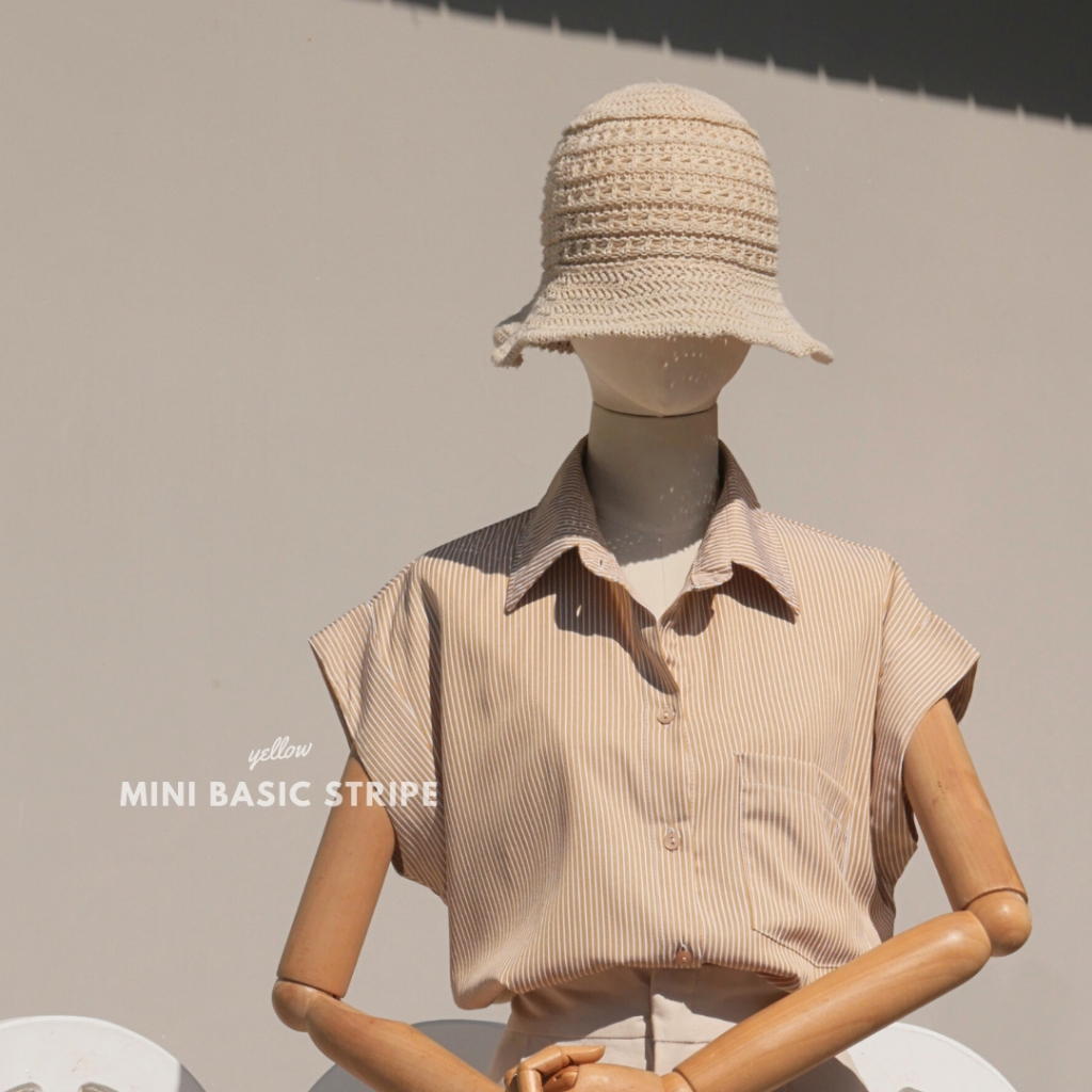 mini basic stripe เสื้อเชิ๊ตลายริ้วกระเป๋าหน้า