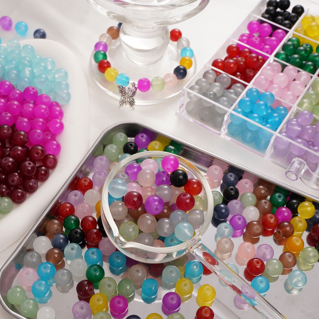 4/6/8/10 มม. เยลลี่ ลูกปัดแก้วเลียนแบบหยกรอบลูกปัดหลวม ช่องว่าง ลูกปัดสําหรับ ทําเอง สร้อยข้อมือสร้อยคอทํา