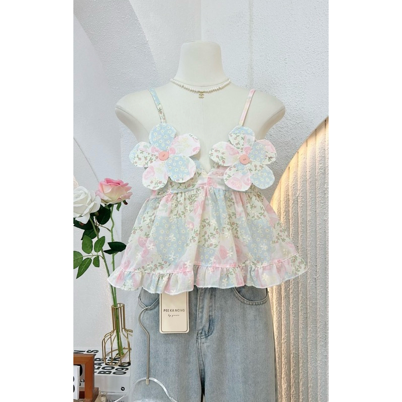 NN667 เสื้อสายเดี่ยวอกดอกไม้ ลายเข้าใหม่สีหวานมาก Peekanong🌷