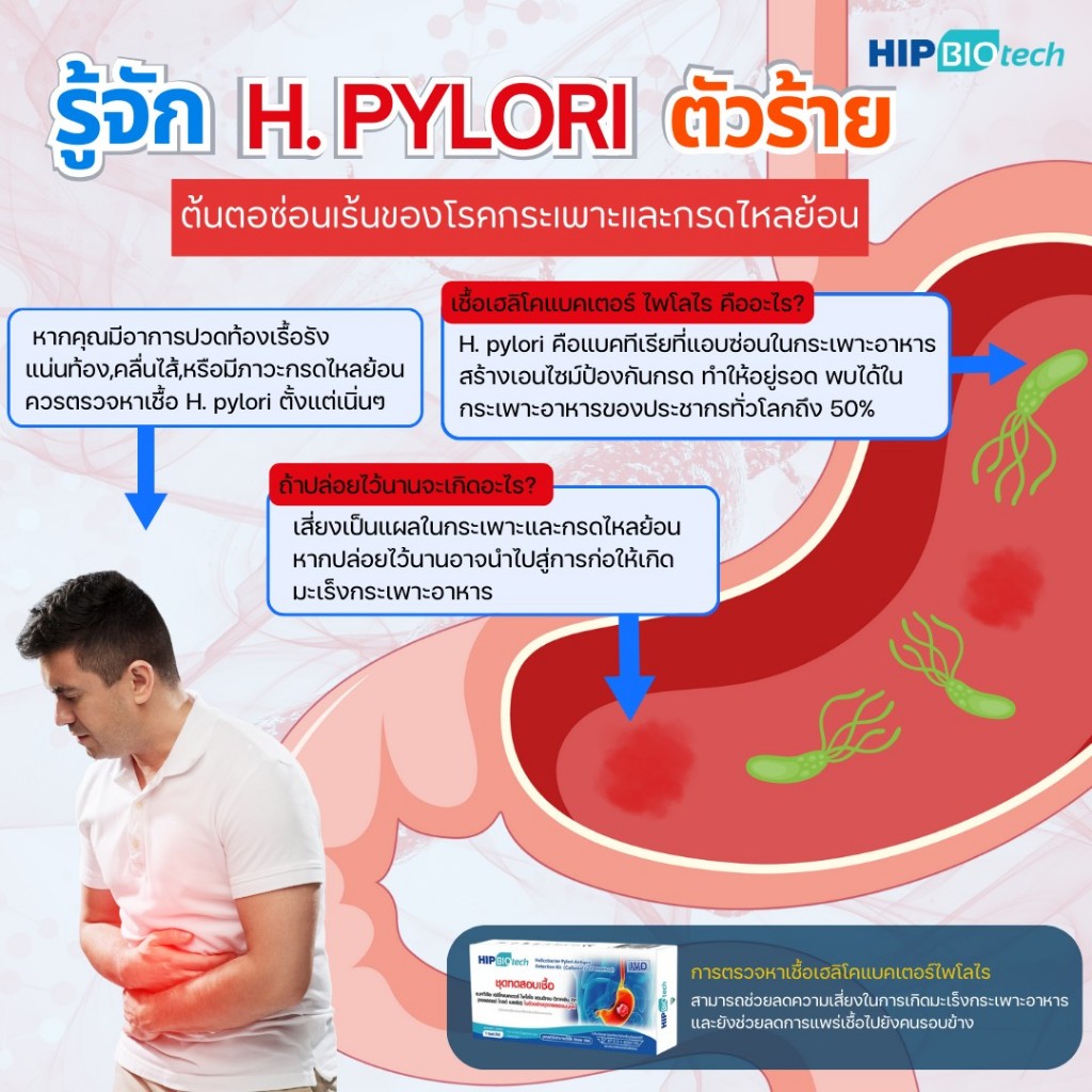 HIP Biotech ชุดตรวจแบคทีเรีย H.Pylori HIPBiotech สาเหตุมะเร็งกระเพาะอาหาร โรคกระเพาะอาหารเรื้อรัง กรดไหลย้อน