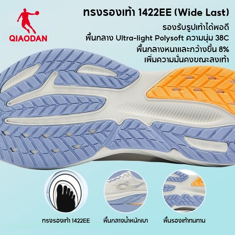 Qiaodan DS2 รองเท้าวิ่งผู้ชาย Cushion นุ่ม Bounce หน้าเท้ากว้าง น้ำหนักเบา คุ้มค่า สบายQXB023253217R