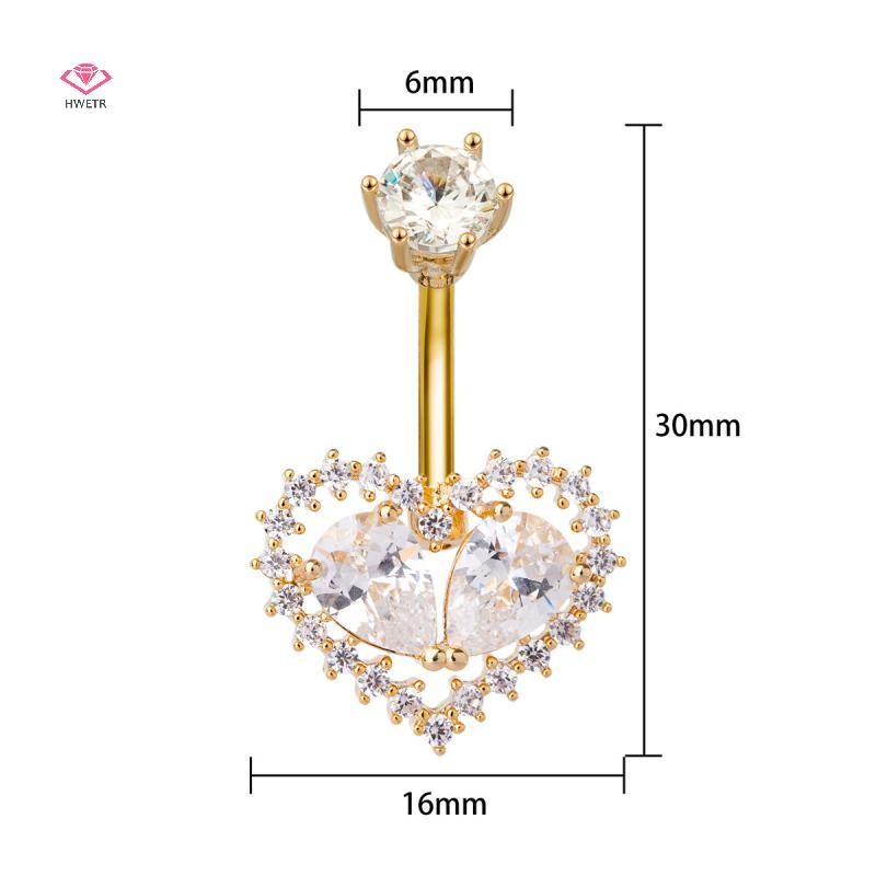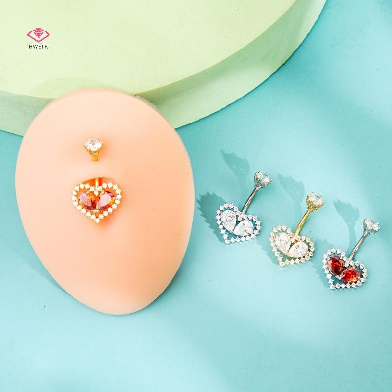 HWETR Simple Heart Belly ปุ่มแหวนเงา Zircon Navel เจาะ Barbell สําหรับผู้หญิงแฟชั่น Belly แหวน Beach Body เครื่องประดับของขวัญใหม่