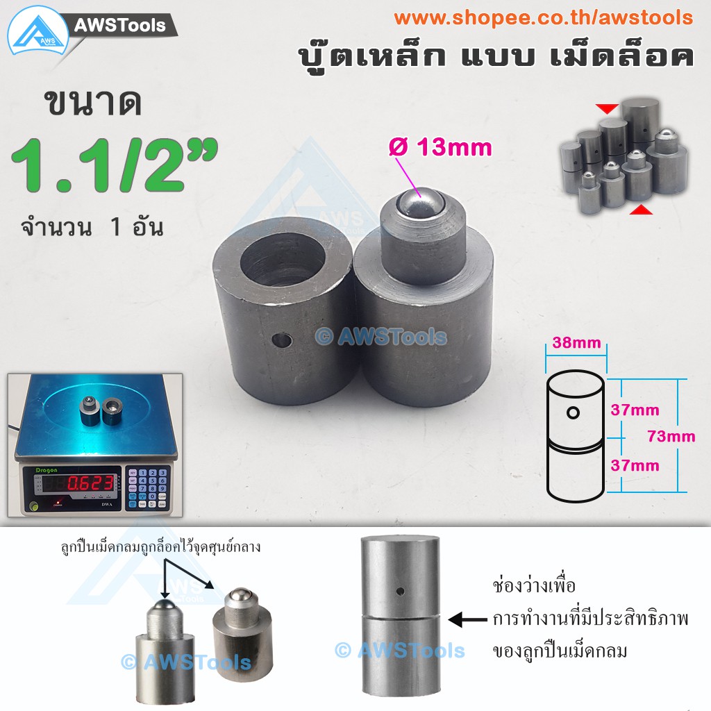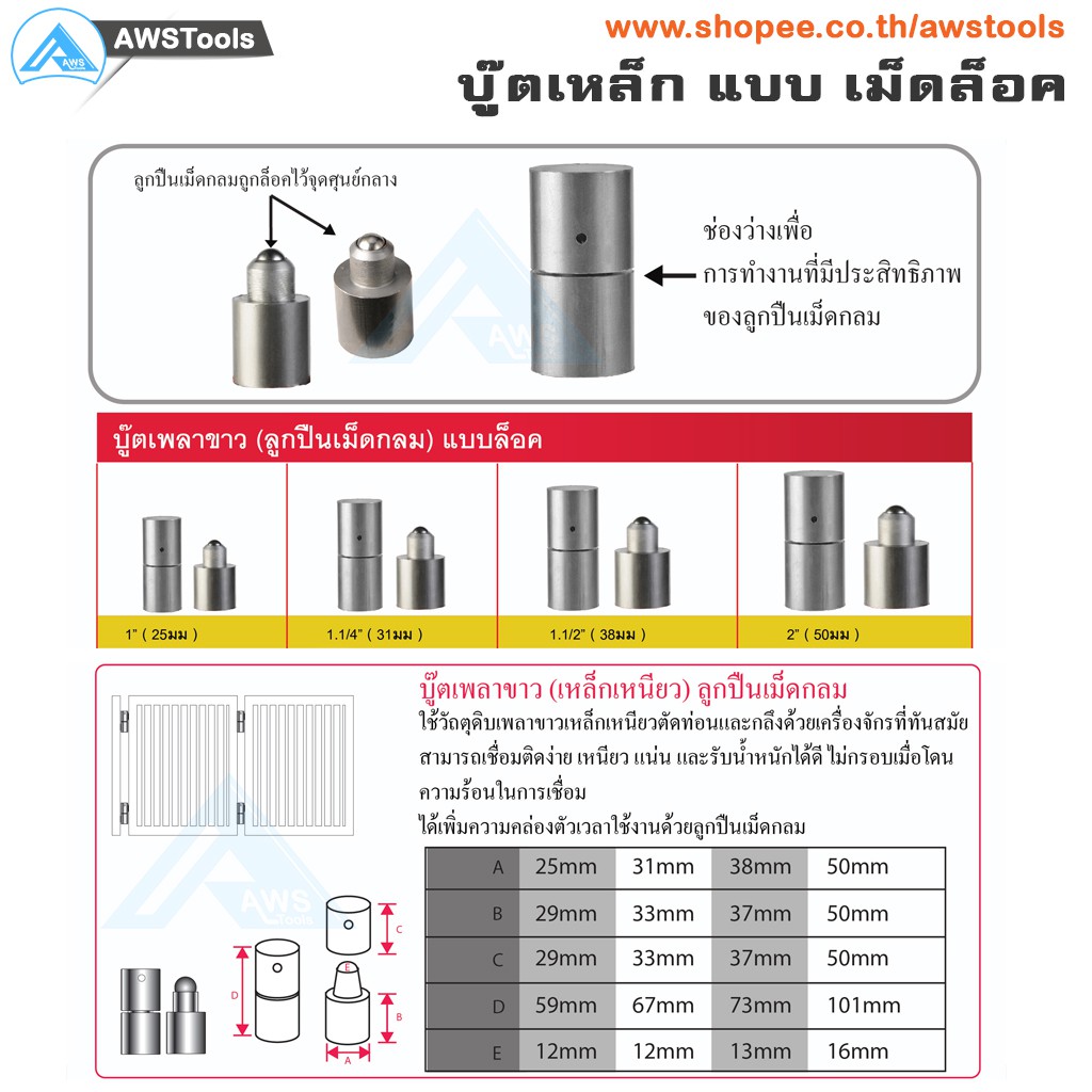 SC บูชประตู ขนาด 1.5 นิ้ว(38mm) เหล็ก แบบ เม็ดล็อค (อะไหล่ รั้ว/ประตู/หน้าต่าง) จำนวน 1 อัน #ประตูบานโค้ง #ประตูบานพับ