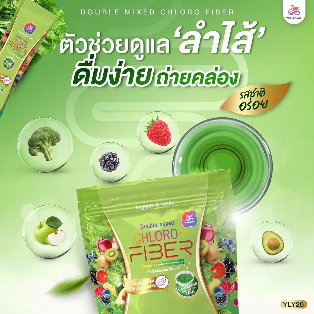 [1 แถม 1] Yaaleeyah Double Mixed Chloro Fiber ญาลีญ่า ดับเบิ้ล มิกซ์ คลอโร ไฟเบอร์ [10 ซอง] คลอโรฟิลล์ Chlorophyll