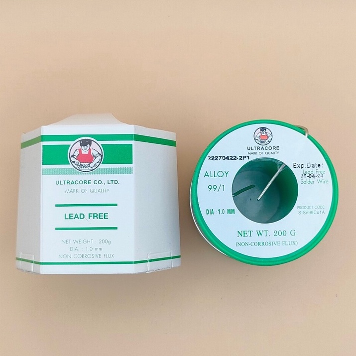 ตะกั่วบัดกรี LEAD FREE 1 มม. 200 กรัม ตรา Ultracore (ไร้สารตะกั่ว)