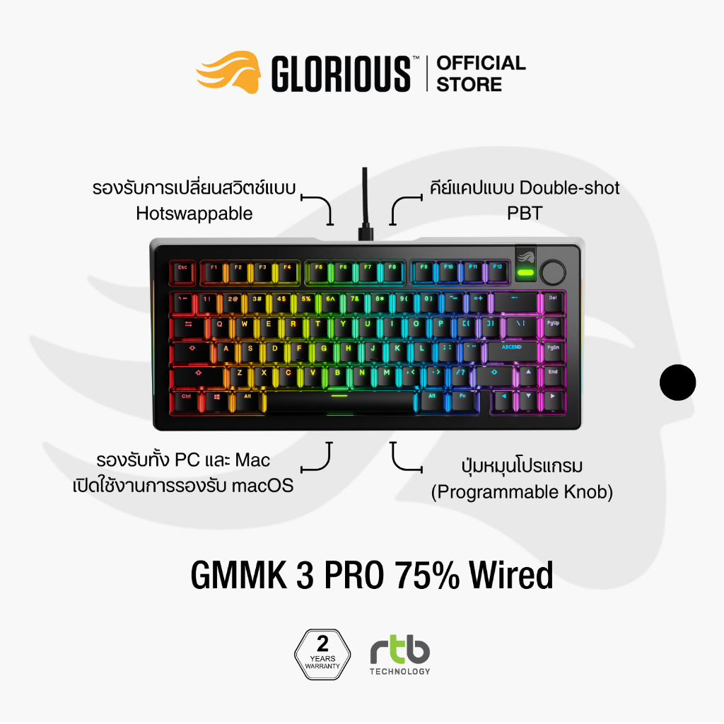 Glorious GMMK 3 Pro Prebuilt คีย์บอร์ดเกมมิ่ง Wired Gaming Keyboard