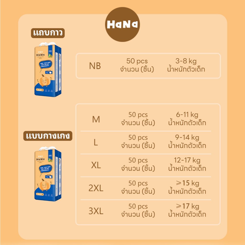 HaNa กางเกงผ้าอ้อมเด็ก ผ้าอ้อมเด็ก NB-XXXL 100pcs/2 pack BABY DIAPERS PANTS