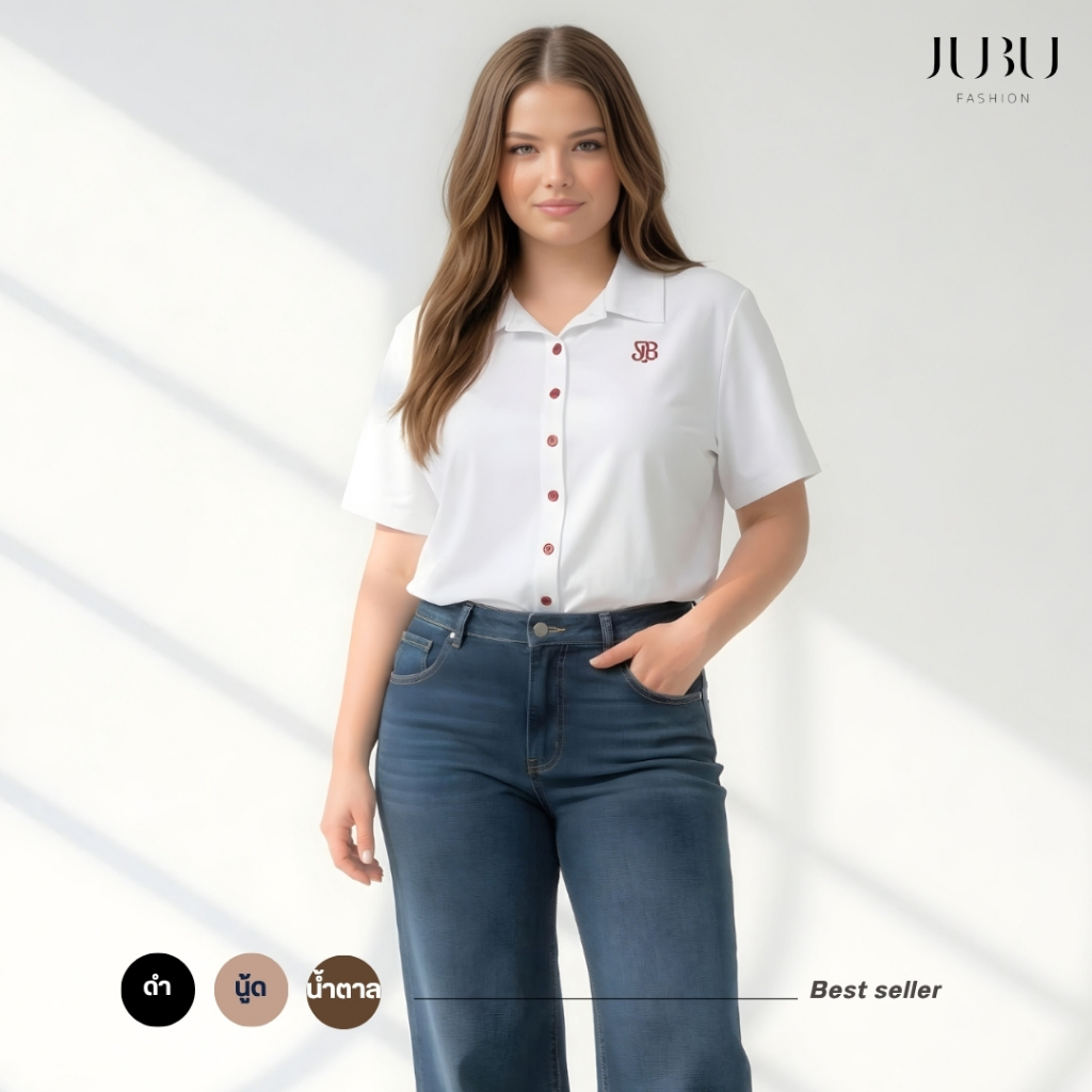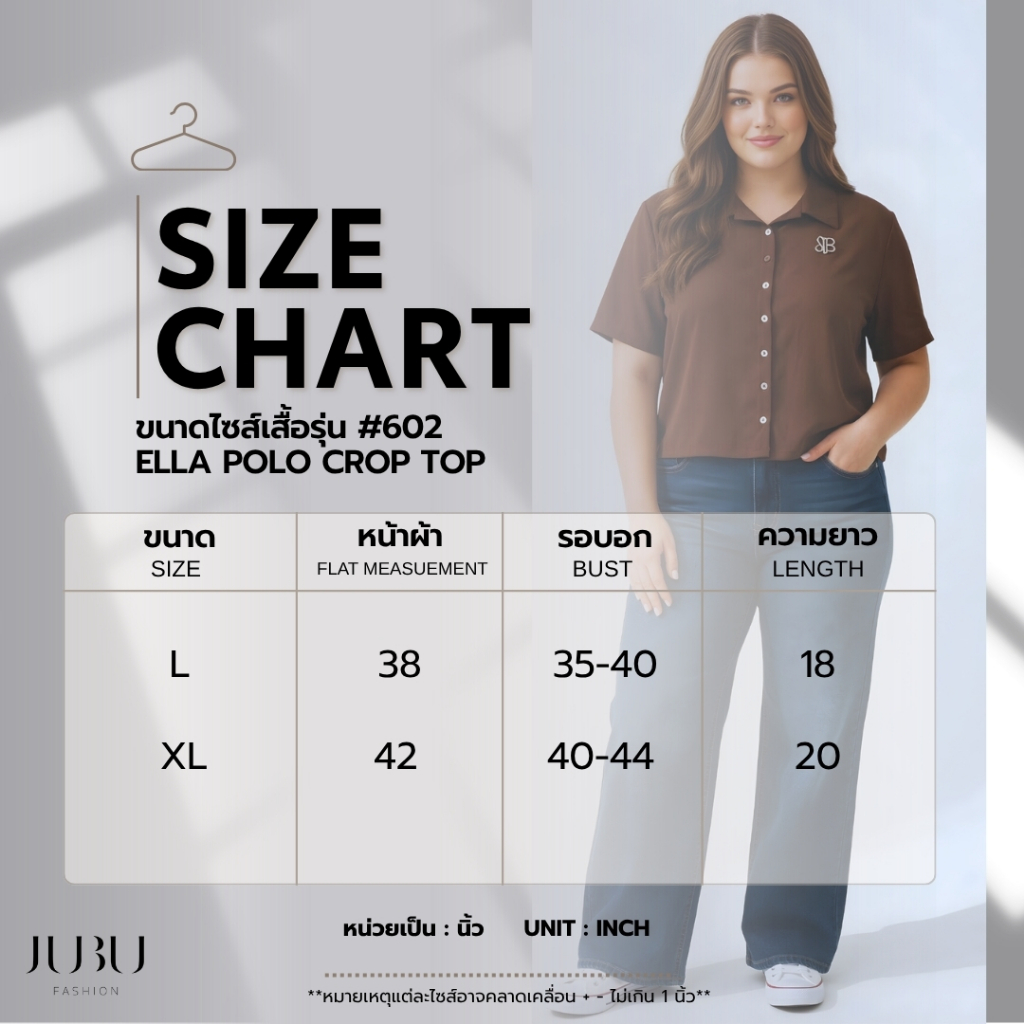 Ella Polo Crop Topเสื้อครอปคอปก แขนสัั้น สาวอวบ สไตล์มินิมอล แฟชั่นเกาหลี ผ้ายูนิโคล อก35-44นิ้ว#602