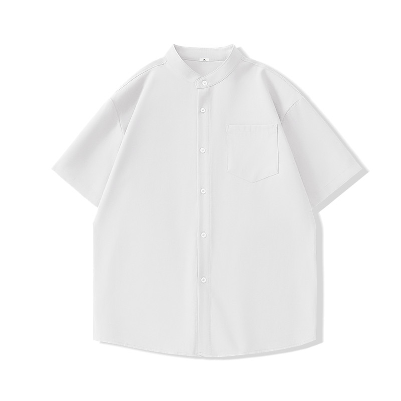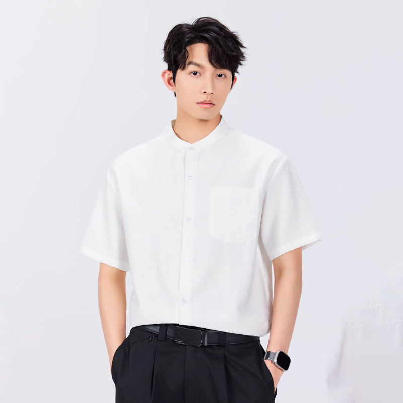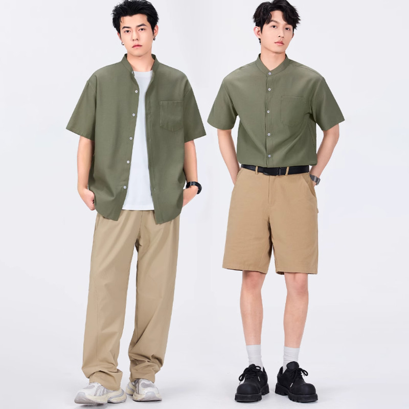 GENIO LAMODE เสื้อเชิ้ตแขนสั้นค่าตั้งแบบ UNISEX ทำจากผ้าลินิน imitation เสื้อคลุมสไตล์จีนสมัยใหม่ สบายๆ ใส่ในฤดูร้อน ระบายอากาศได้ดี สวมใส่สบาย มีขนาดใหญ่พิเศษ