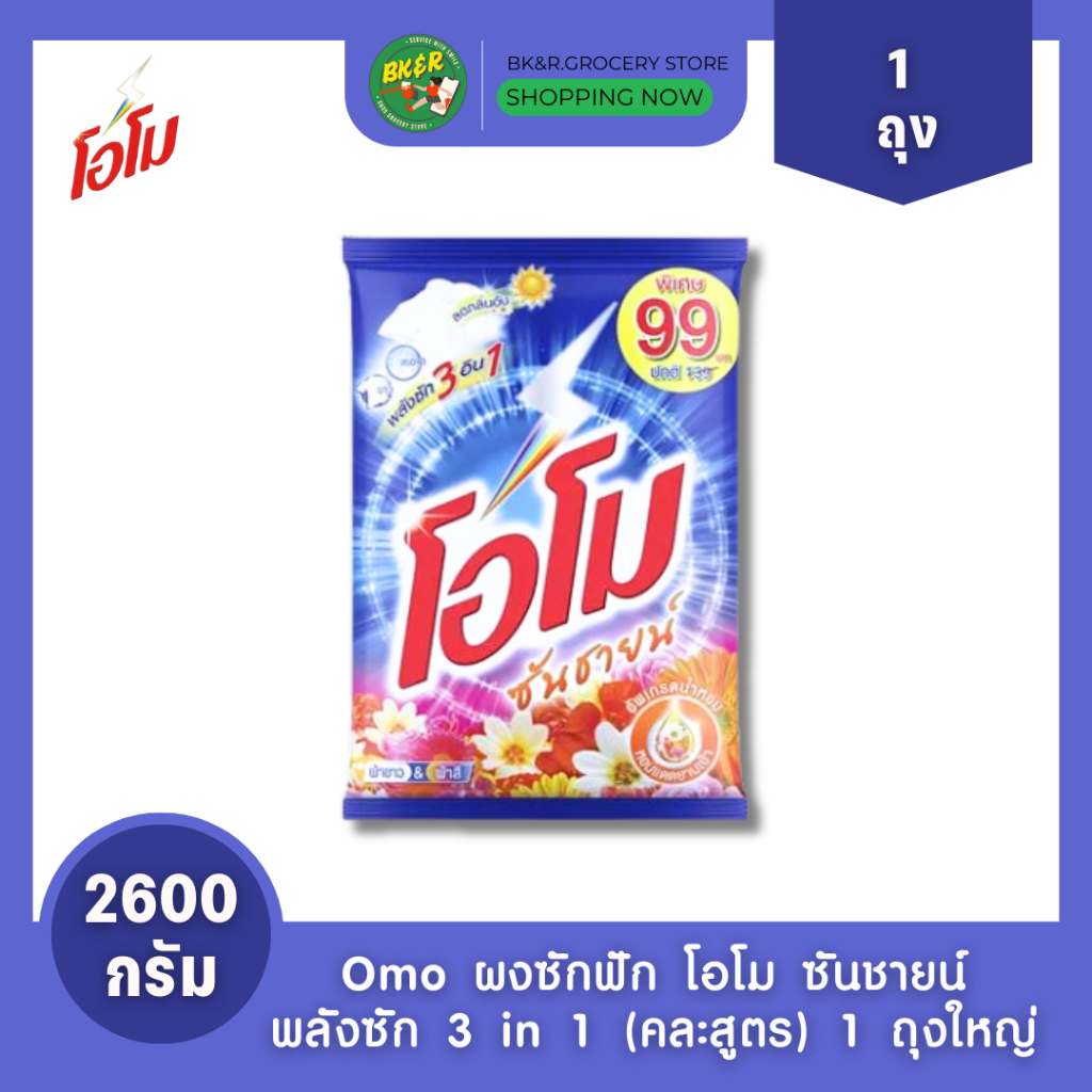 (1 ถุงใหญ่) Omo Sunshine โอโม โอโม่ ผงซักฟอก คละสี โอโมซันชายน์ ขนาด 2600 กรัม ห่อใหญ่ สุดคุ้ม x1