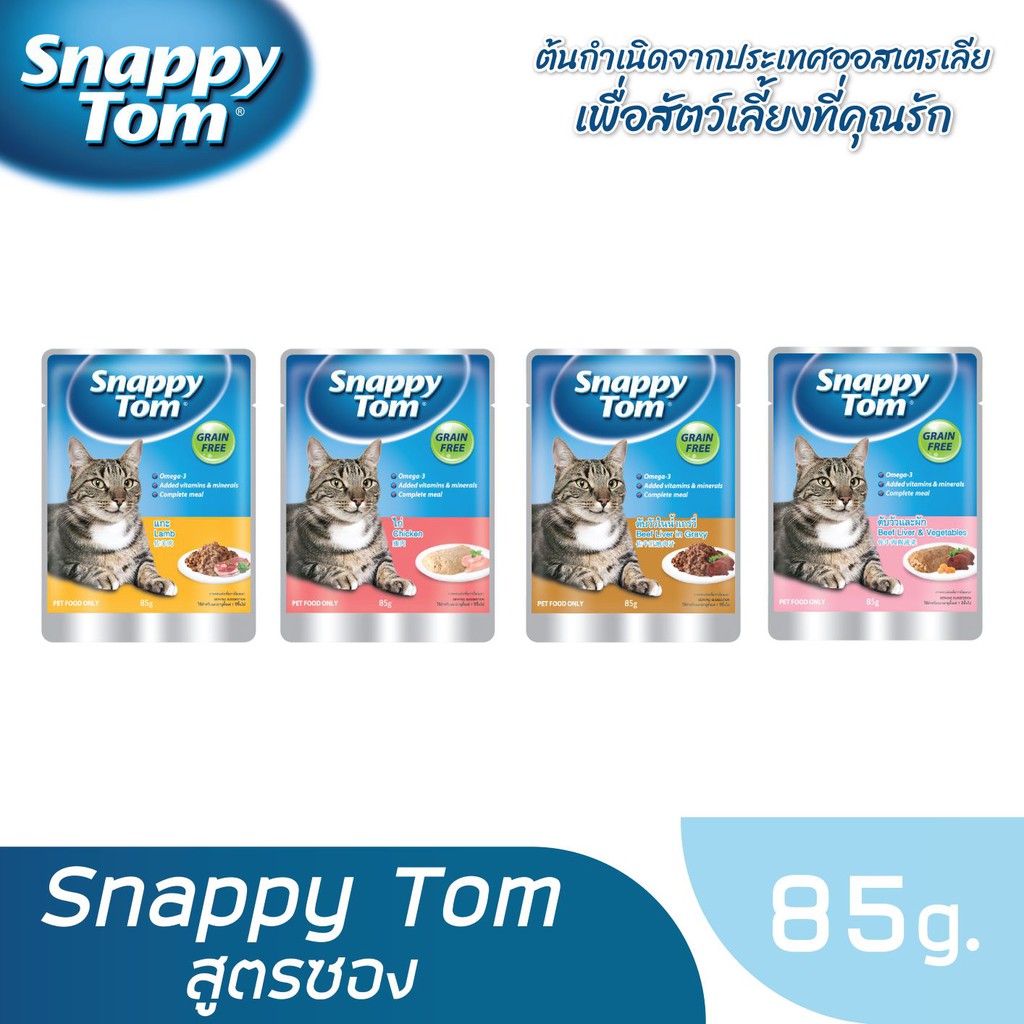 สแนปปี้ทอม อาหารแมวขนาด 85 กรัม สูตรไก่ x48 ซอง (Snappy Tom CAT FOOD 85 g. Chicken x48 pouches)