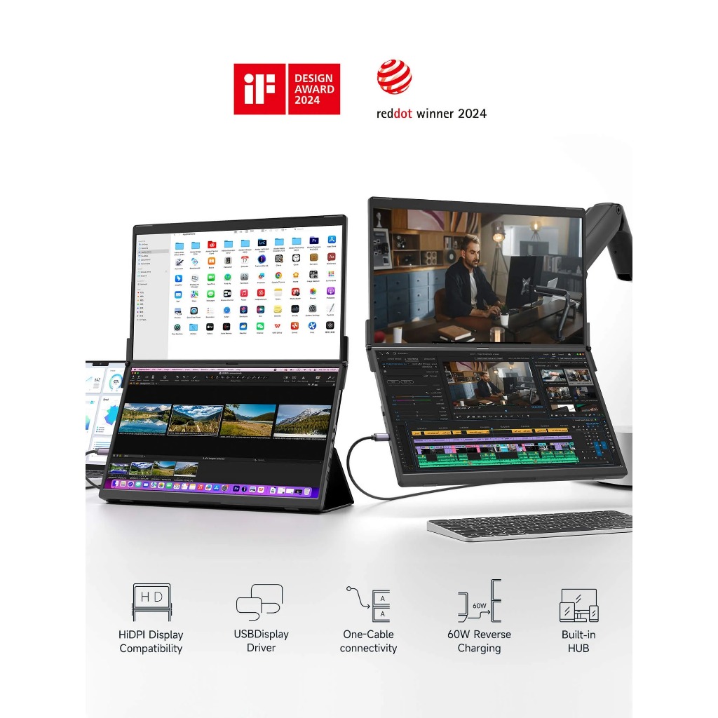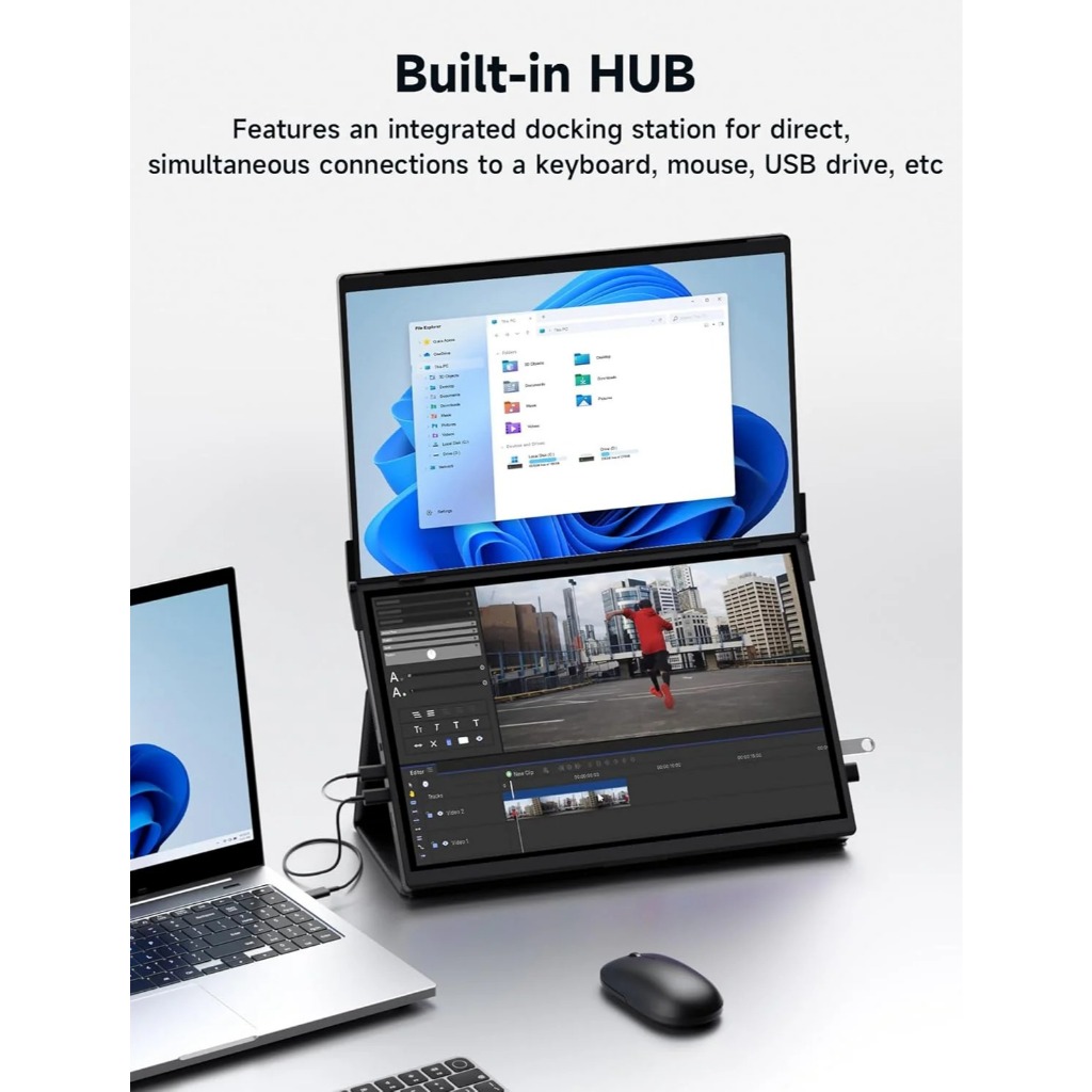 JSAUX FlipGo จอแสดงผลขยายจอภาพคู่แบบพกพาเหมาะสําหรับแล็ปท็อปเครื่องฉายภาพวิดีโอแบบ Dual-Screen แบบพกพา หน้าจอแสดงผลแล็ปท็อป