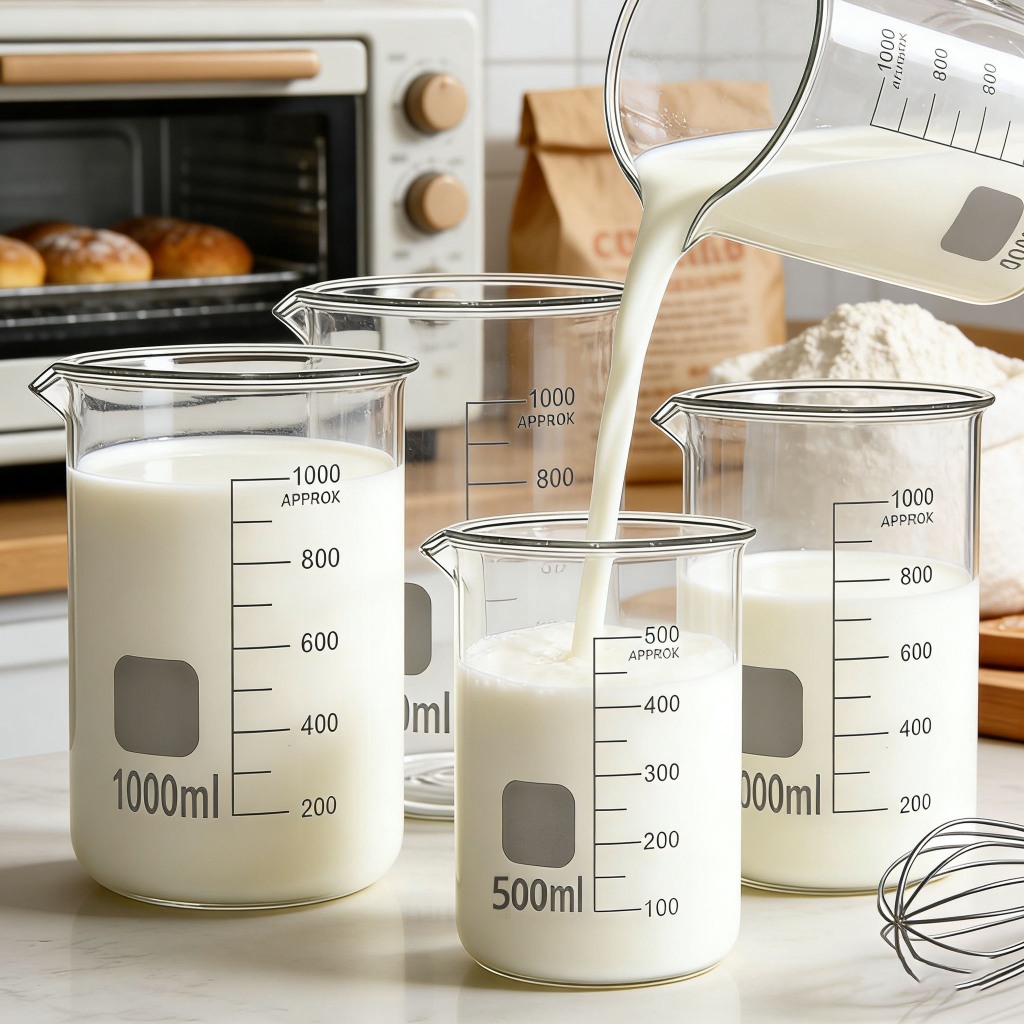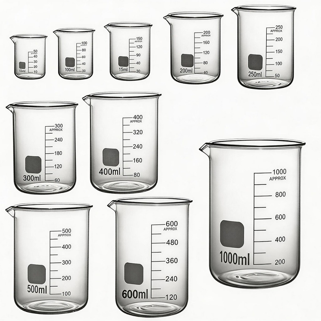 ถ้วยตวงแก้วบอโรซิลิเกตสูง 50-1000มล ทนความร้อน -20℃ ถึง150℃ Lab Kitchen Beaker เครื่องชั่งใส