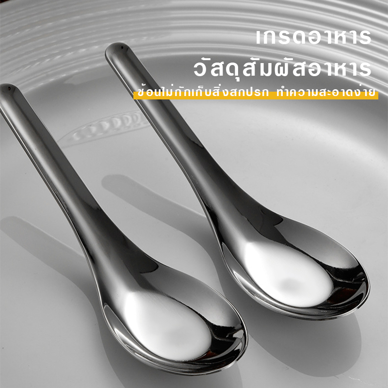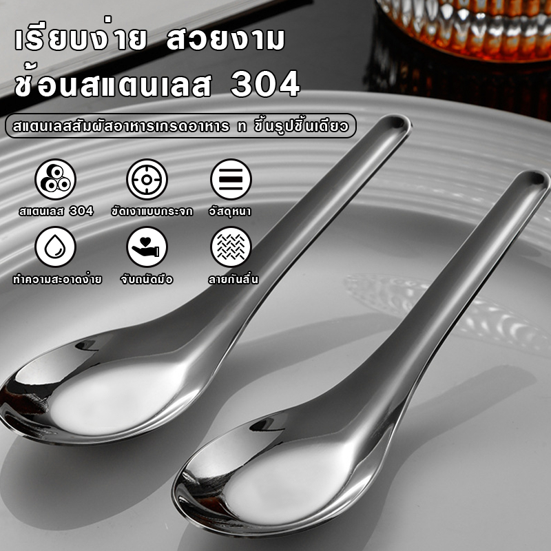 [12 แถม 12] ช้อนสแตนเลส 304 ช้อนข้าว ช้อนแกง ช้อนราเมน ช้อนซุปสแตนเลสคุณภาพสูง ขนาดใหญ่ 4×13CM