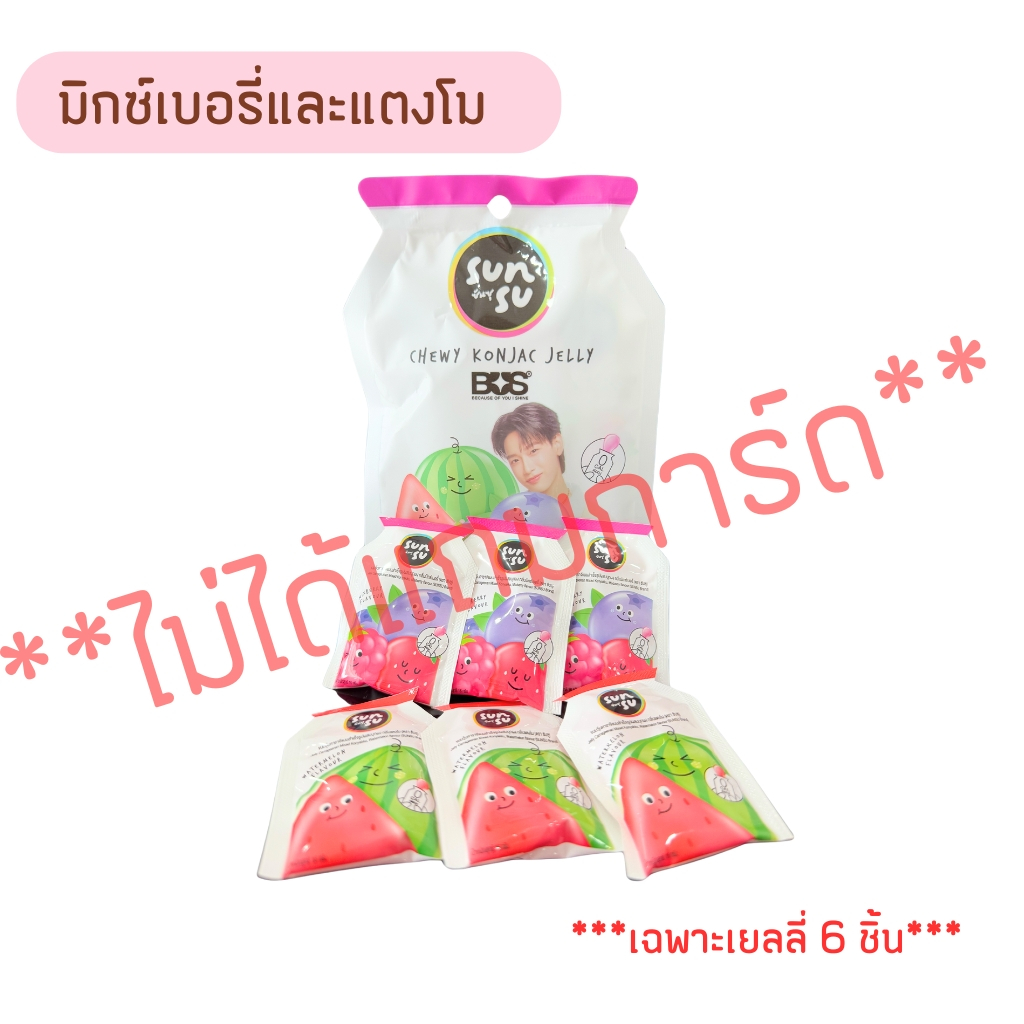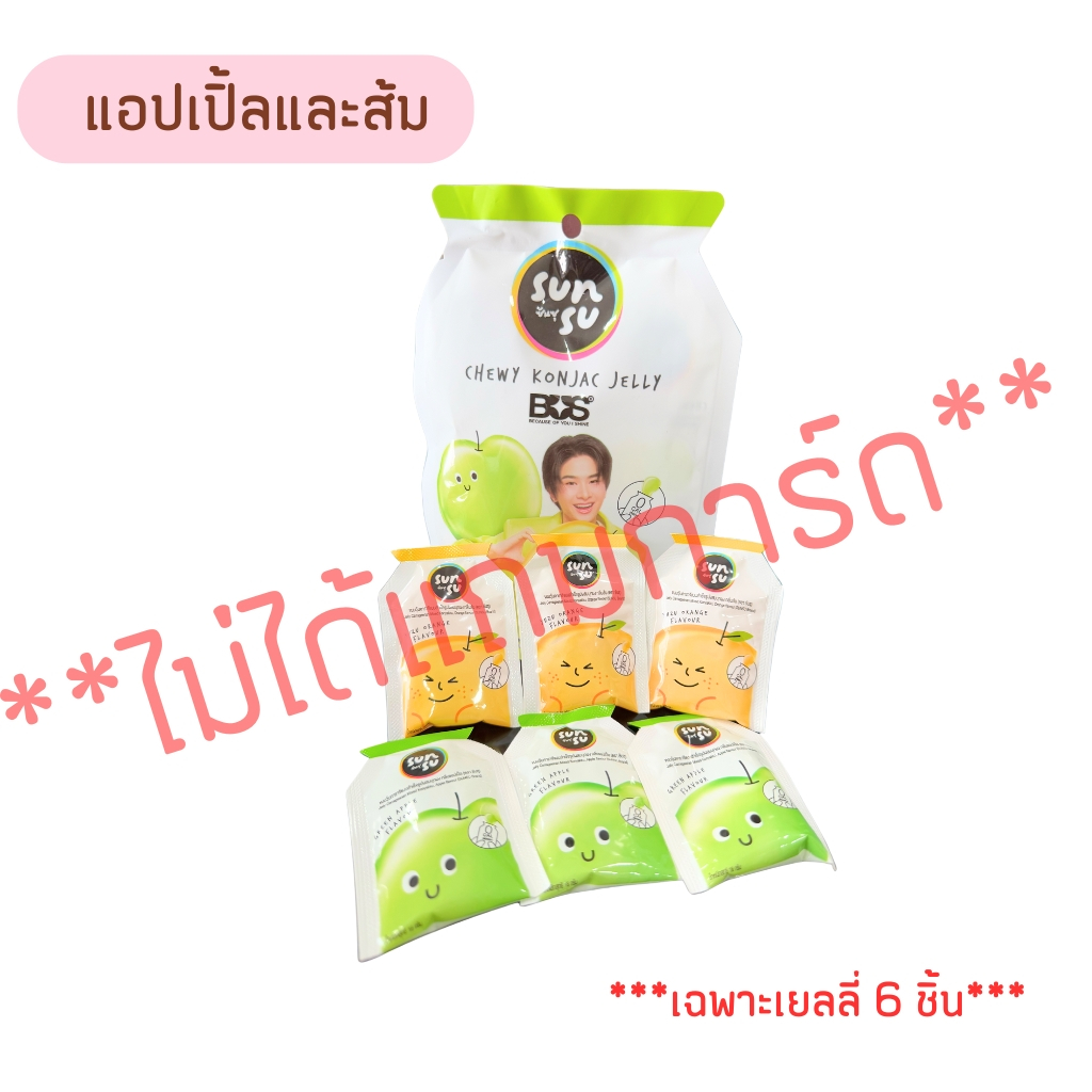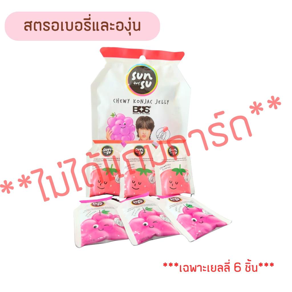 **ไม่แถมการ์ด** Sunsu เยลลี่ (ขายแยก 1 ซอง มี 6 ชิ้น ) สูตรใหม่ 5 ชิ้น ไม่มีการ์ด Sunsu x BUS/4EVE
