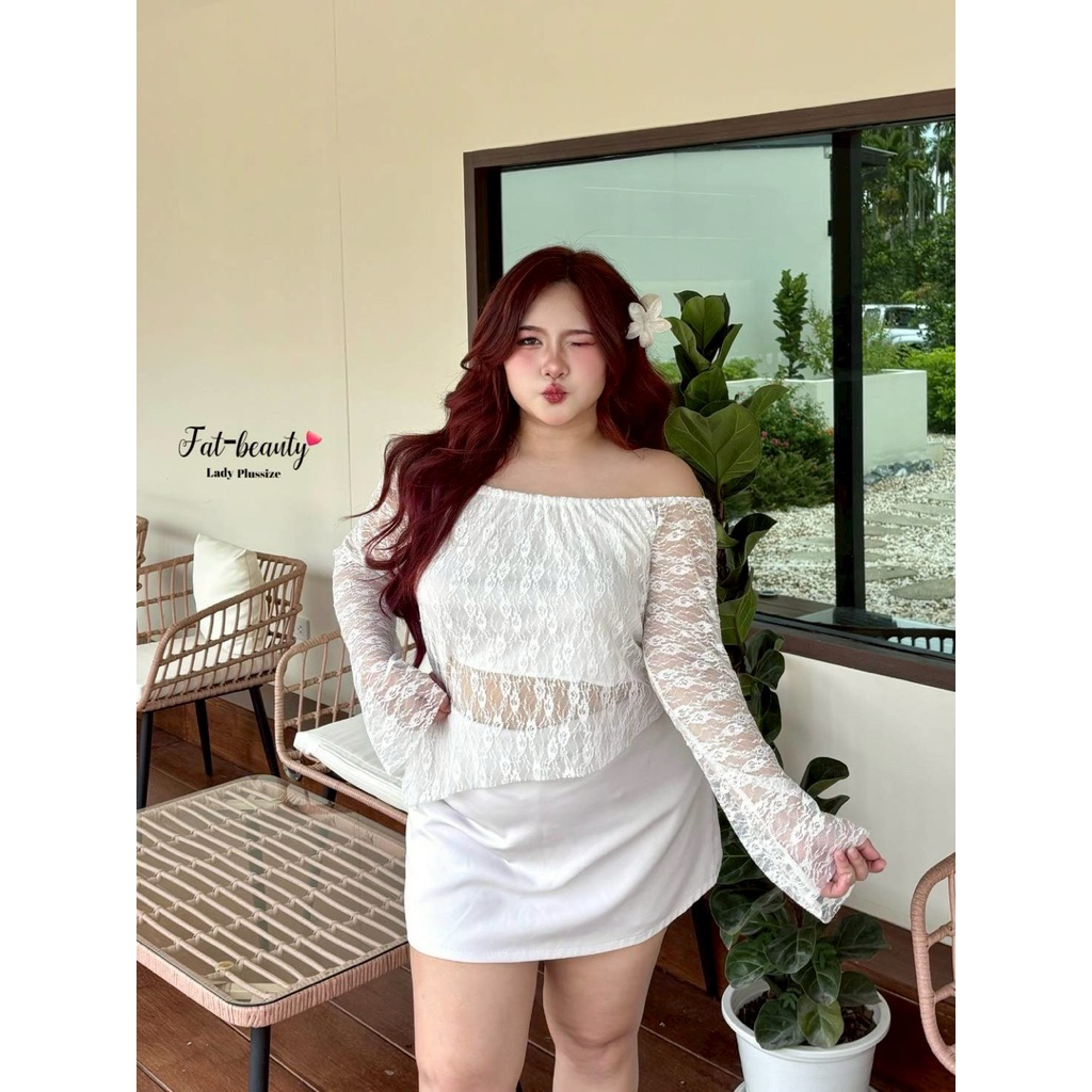 ✅/FB/ เสื้อปาดไหล่แขนกระดิ่ง สาวอวบ ไซส์อก40-52 ผ้าลูกไม้นิ่มซีทรู มีซับในครึ่งบน หวานอมเปรี้ยว #เสื้อไซส์ใหญ่ พลัสไซส์
