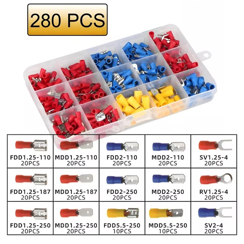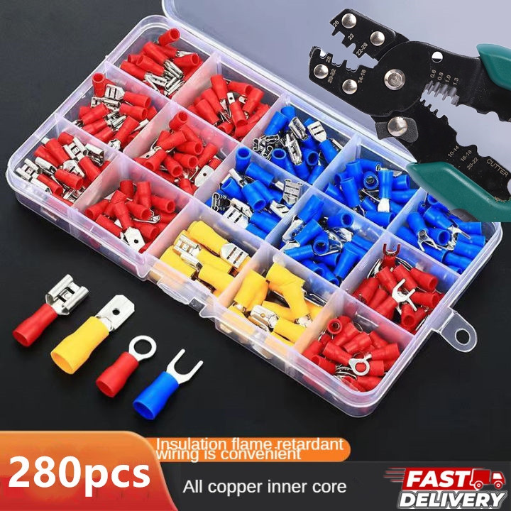 ชุด 280 ชิ้น + โมงคีม ชุดหางปลาคละแบบ ขั้วต่อสายไฟฟ้าหุ้มฉนวน เชื่อมต่อสายไฟ คีมปอกสายไฟ คีมตัด 5 in 1