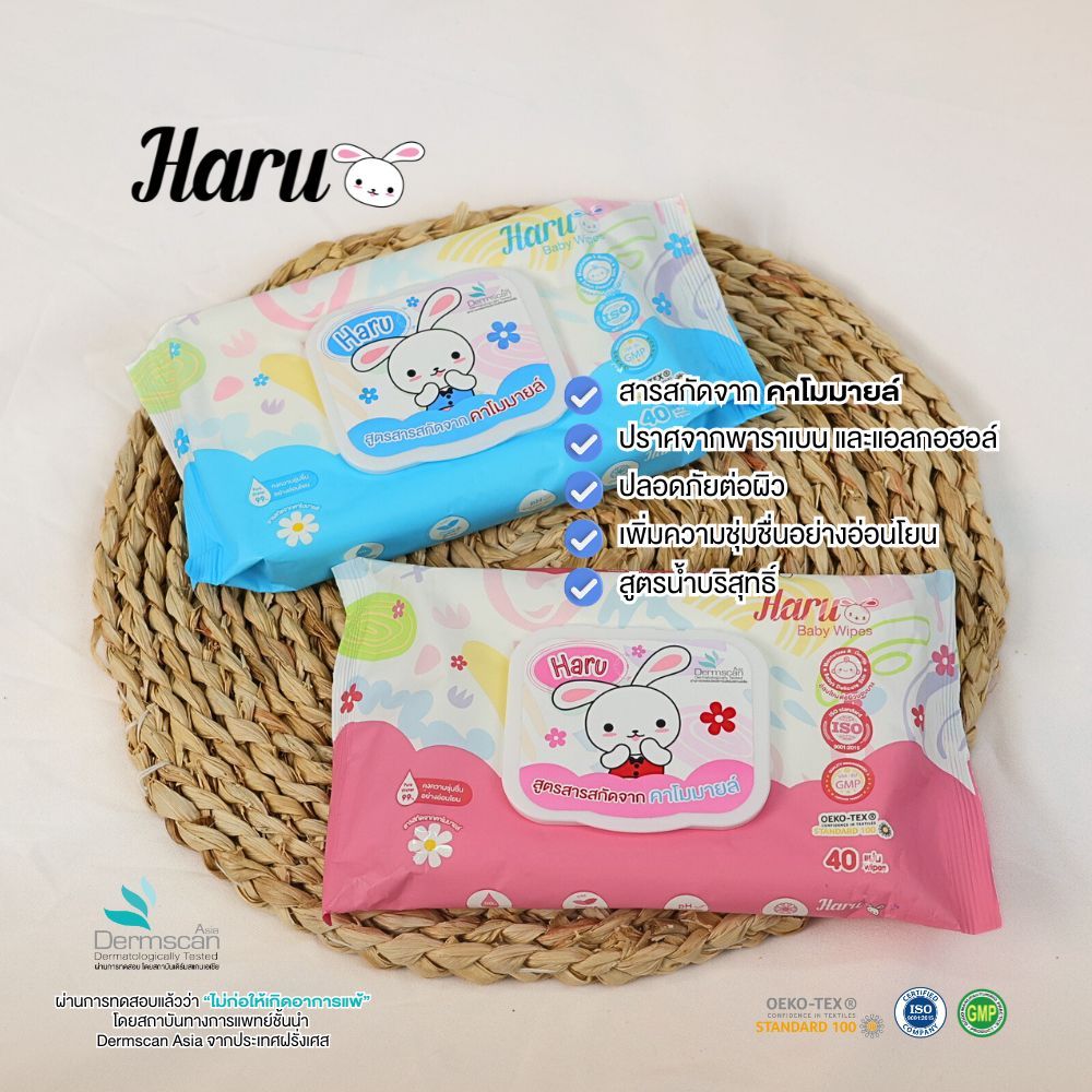 Haru - ทิชชู่เปียก 1440 แผ่น 36 ห่อ 6 แพ็ค สารสกัดจากคาโมมายล์ สูตรอ่อนโยนสำหรับเด็ก (1 ห่อ 40 แผ่น)