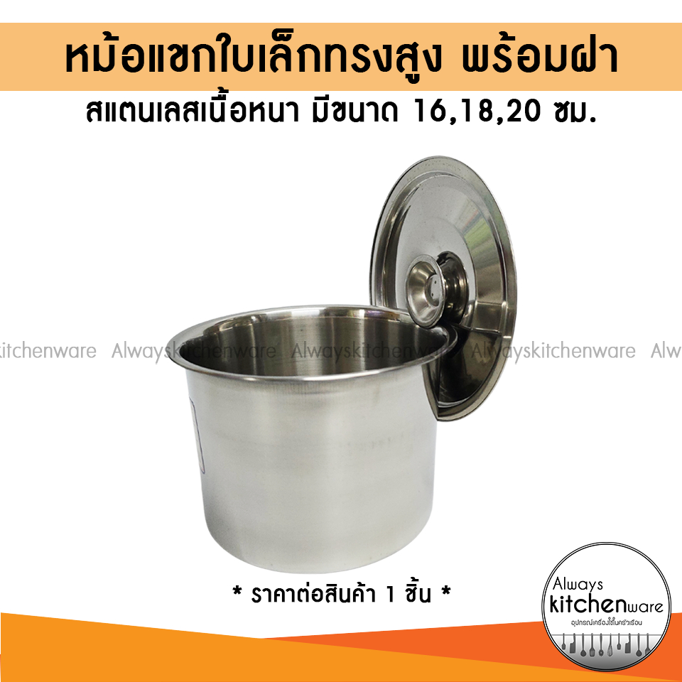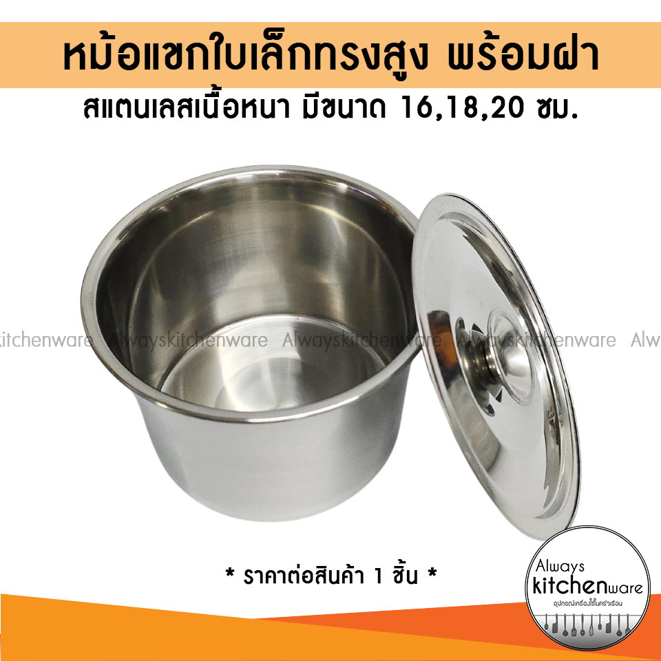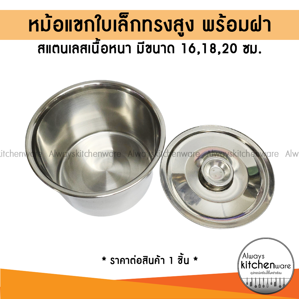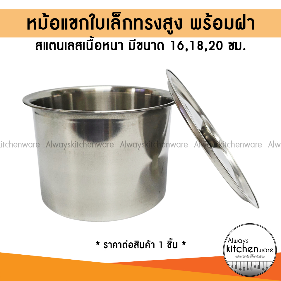 หม้อแขกทรงสูง หม้อสตูว์ หม้อน้ำจิ้ม สแตนเลส ขนาดเล็ก พร้อมฝา 16,18,20 ซม.
