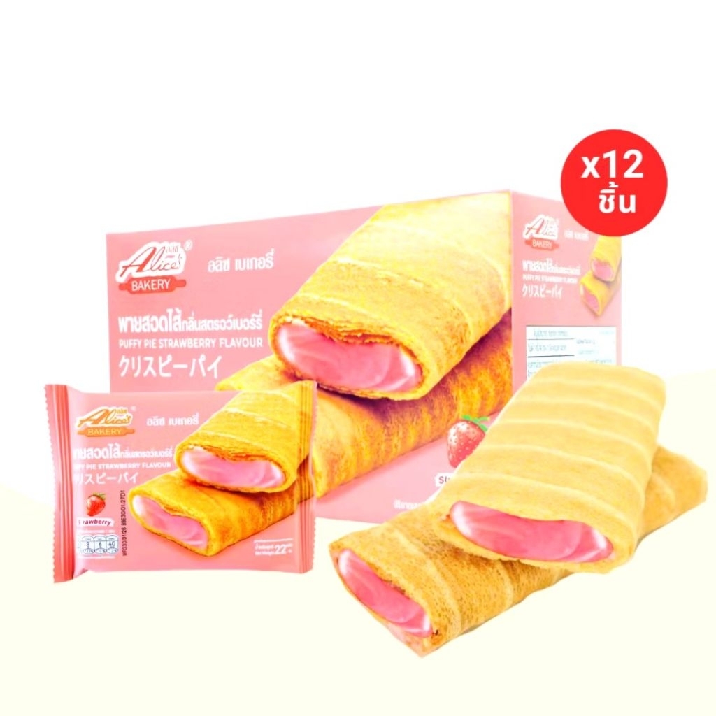 พายกรอบสอดไส้ อลิซ เบเกอรี่ Alice's Bakery กรอบ หอม อร่อย มี 5 รสชาติ ผลิตใหม่ 1 กล่อง บรรจุ 12 ซอง