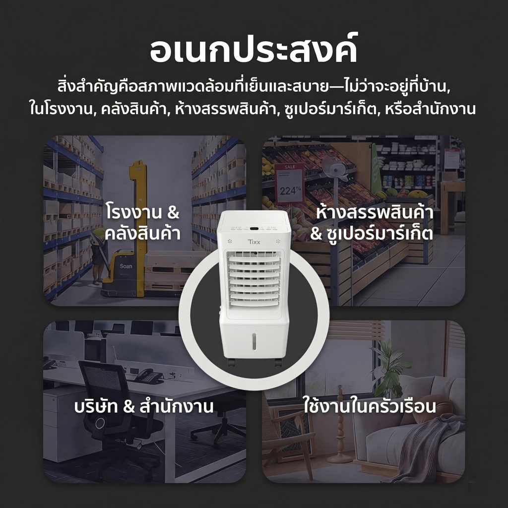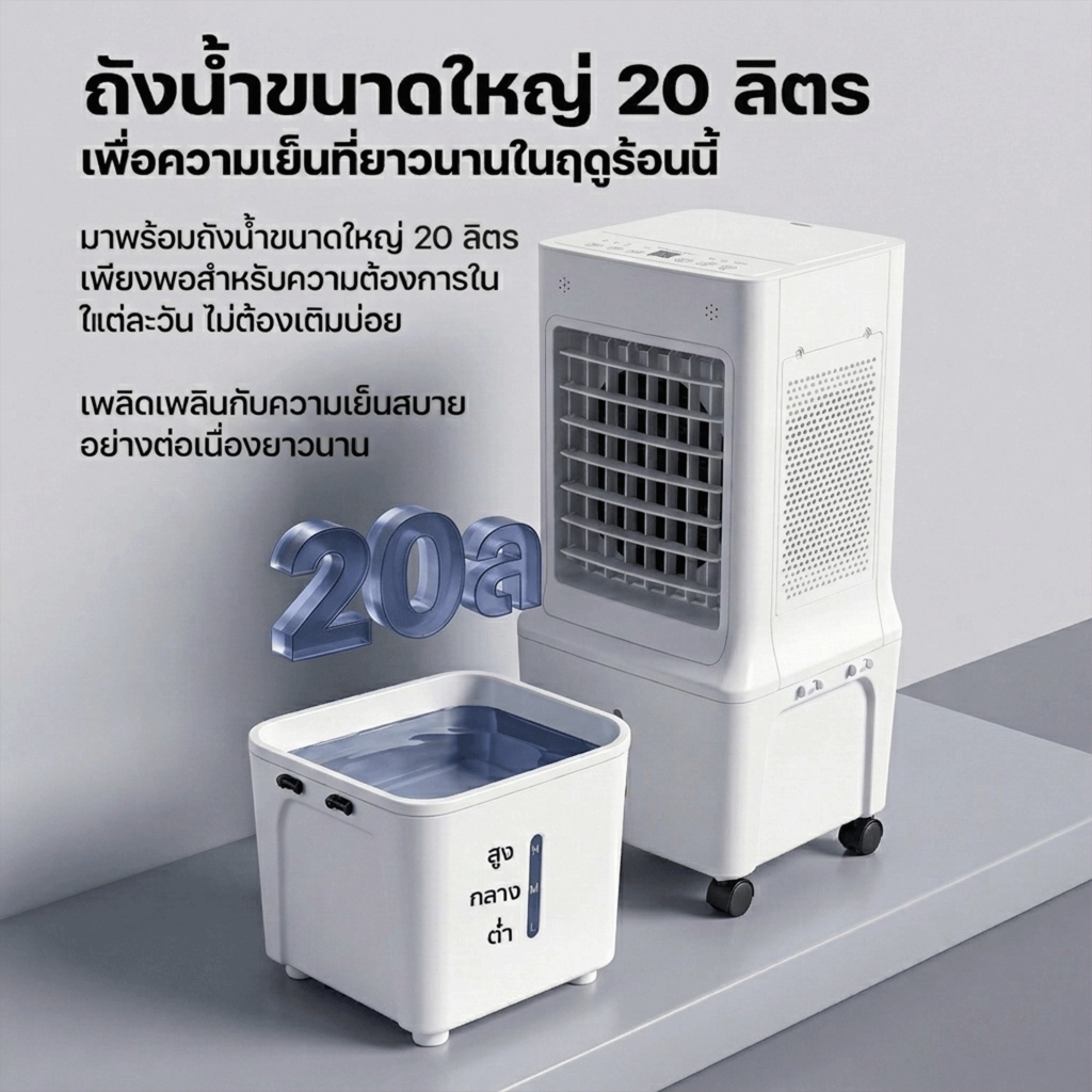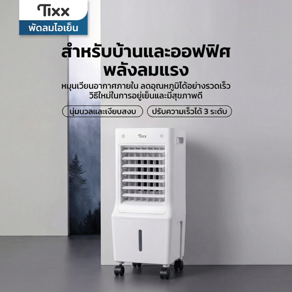 TIXX พัดลมไอเย็น ขนาดเล็ก 20L ถังน้ำถอดได้ สำหรับห้องนอน ขนาดเล็ก ขนาดและประหยัดพื้นที่ สำหรับห้องนอน