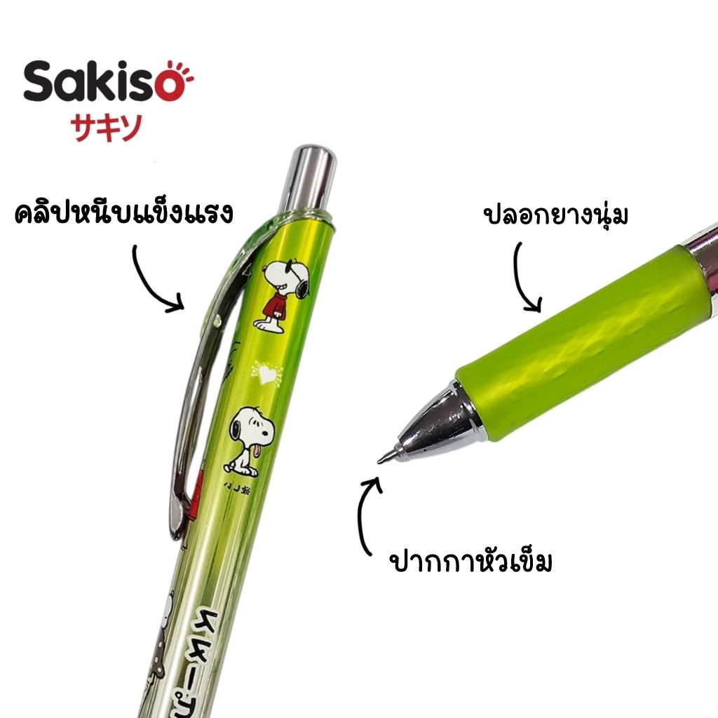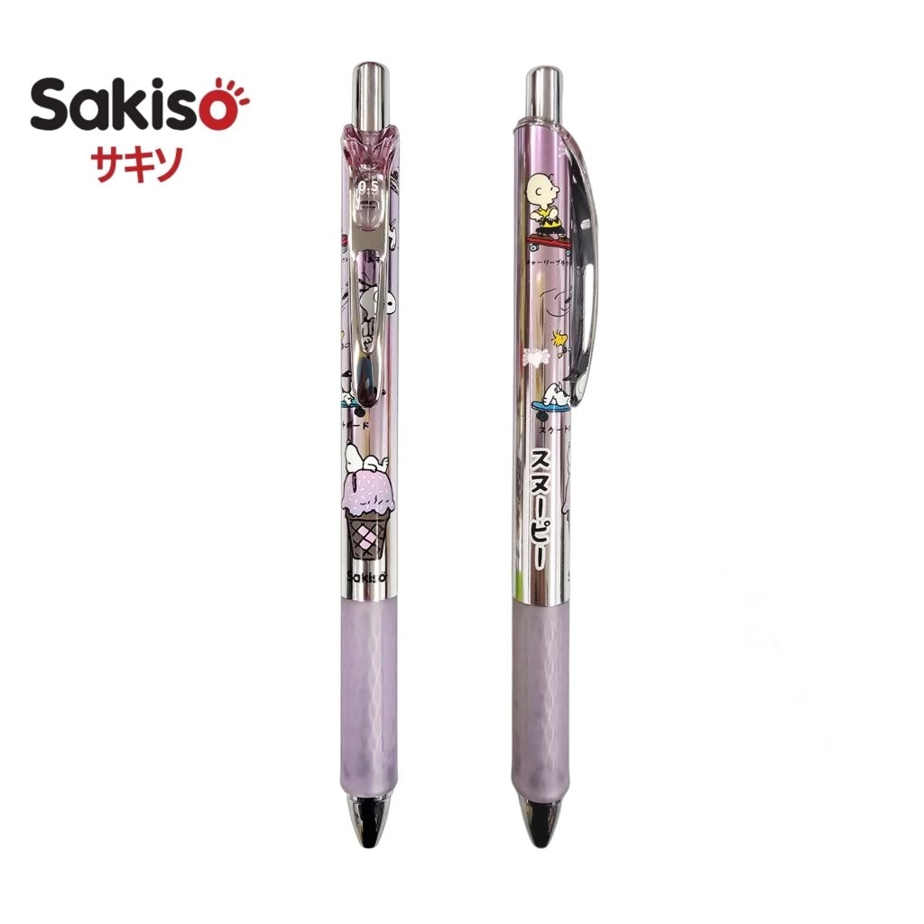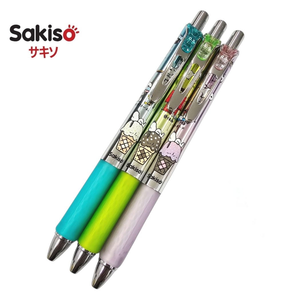 Sakiso ปากกาเจล (JGP168-3) Snoopy Yummy Day ขนาด 0.5 มม. หมึกน้ำเงิน หมึกแห้งไว (ราคาต่อ 1 ด้าม / คละสี)