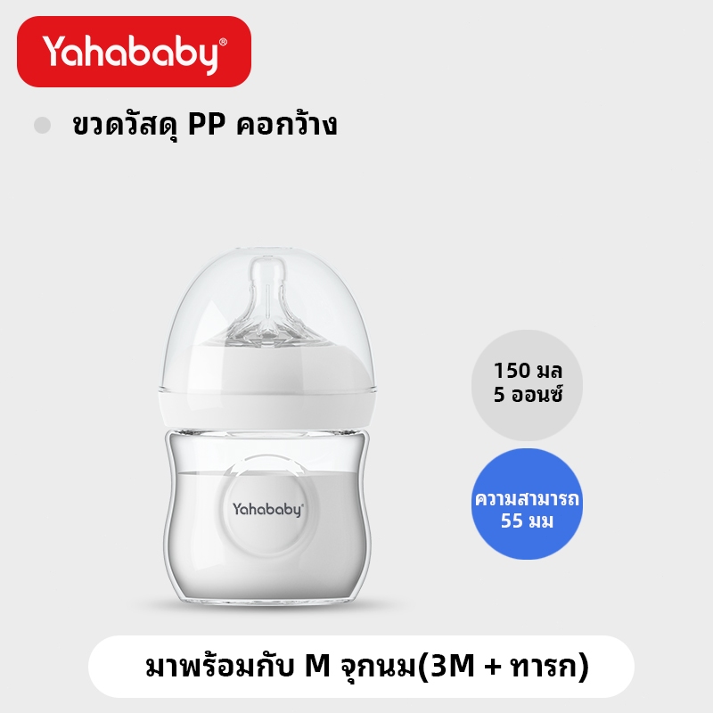 YAHABABY ขวดนมเด็ก PP ปลอด BPA เลียนแบบนมแม่ ป้องกันการสำลัก ทนต่ออุณหภูมิสูง ฐานกว้าง 150ml 300ml