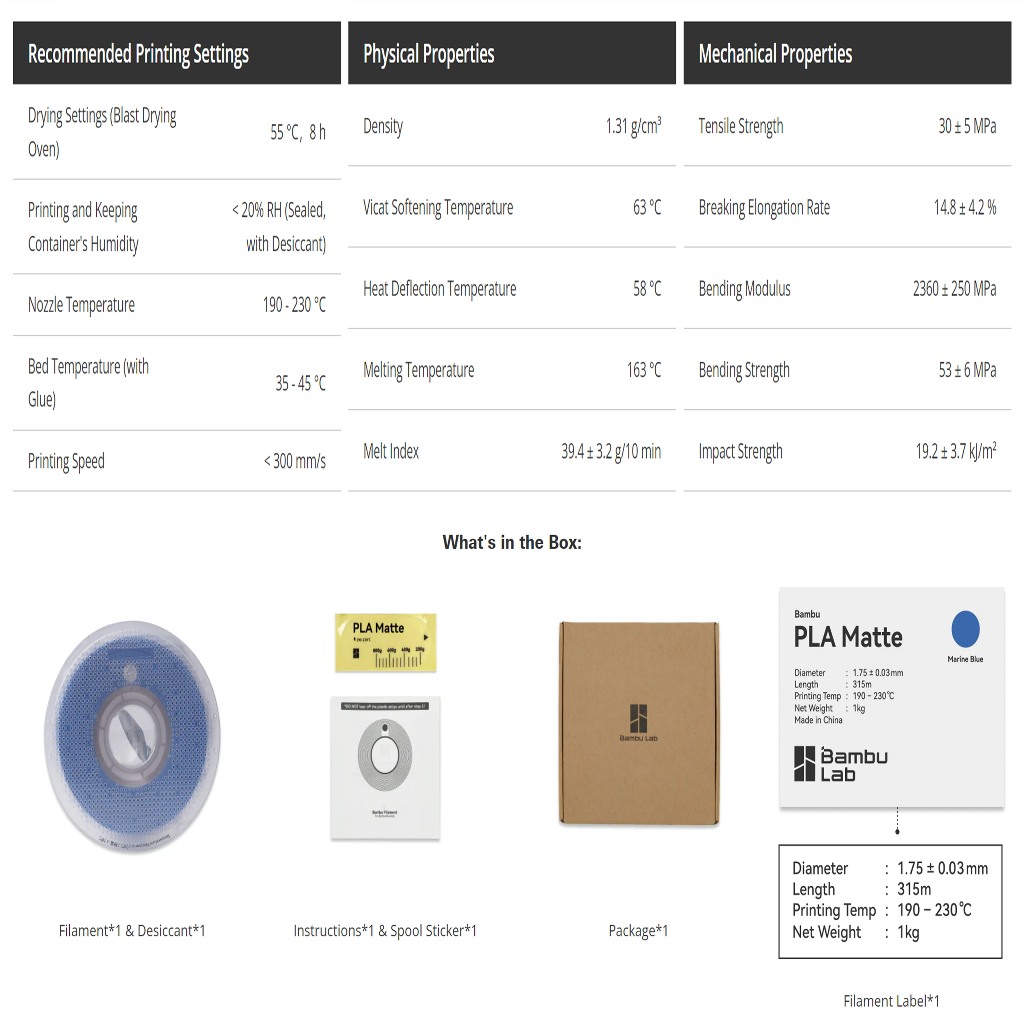 Bambu Lab With Spool PLA Matte ด้าน มีความเหนียวสูง ลอกออกง่าย ความเร็วสูงและพิมพ์ง่าย RFID