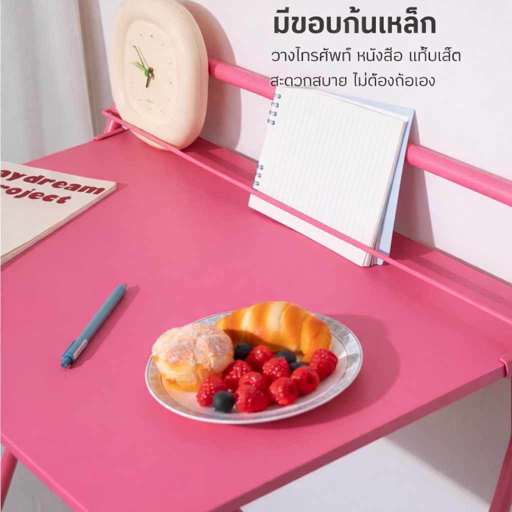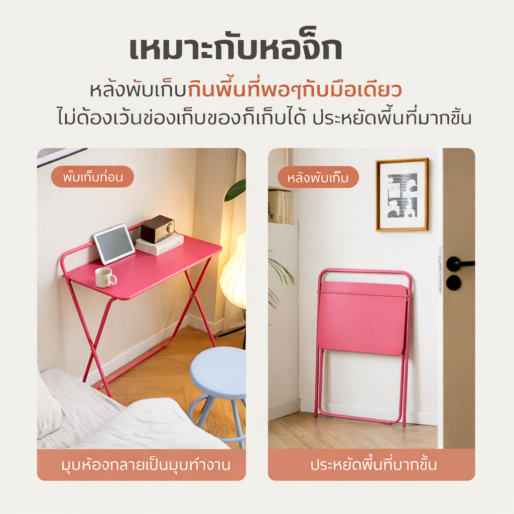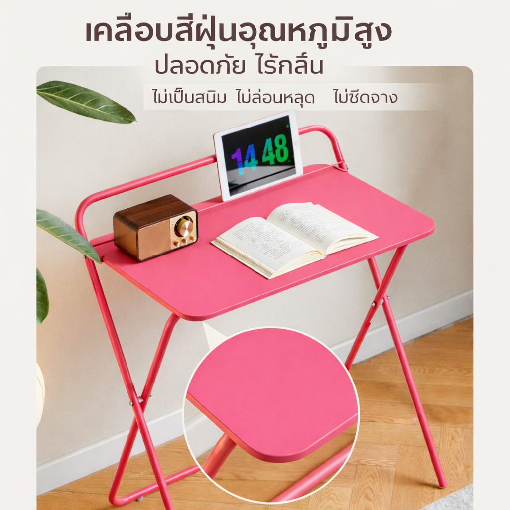 Homemark 60x40cm โต๊ะพับสไตล์นอร์ดิก มินิมอล ทรงสี่เหลี่ยม สีสันสดใส โครงเหล็ก วางระเบียง โต๊ะแคบสไตล์อินสตาแกรม โต๊ะ