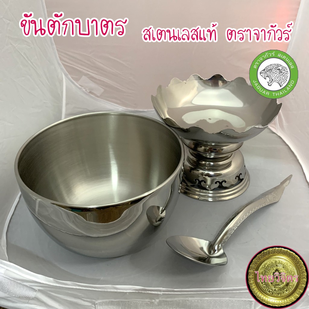 ขันตักบาตร ขนาด 20 ซม. จากัวร์ สเตนเลสแท้ (ขันพานรองสเตนเลส ขันใส่บาตร)