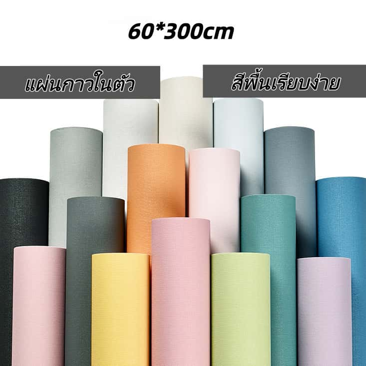 Wallpaper Pvc วอลเปเปอร์สีพื้น มินิมอล สติ๊กเกอร์ติดผนัง กาวในตัว กันน้ำ ง่ายติดเอง | ขนาด 40/60×300 ซม