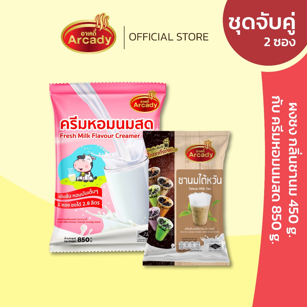 Arcady ชุดจับคู่สุดคุ้ม ผงชานม เครื่องดื่มผงชง ตราอาเคดี้ ขนาด 450 กรัม.คู่กับ ครีมหอมนมสด ขนาด 850 กรัม