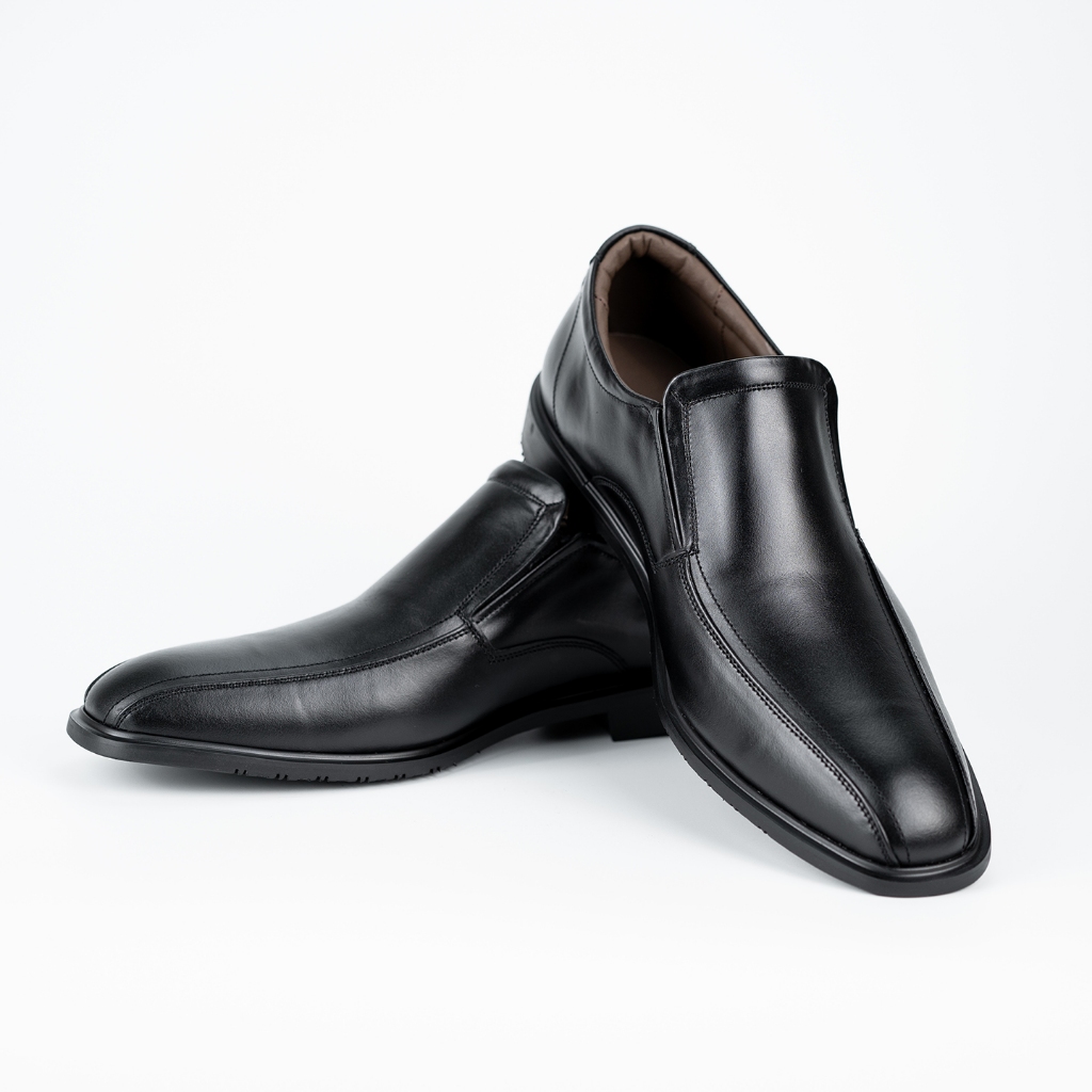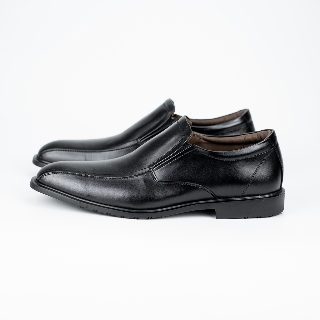 [รุ่นใหม่] การก้าว รองเท้าทางการ รองเท้าคัทชู หนังวัวแท้ 100% รองเท้าสลิปออน สีดำ รุ่น KK804