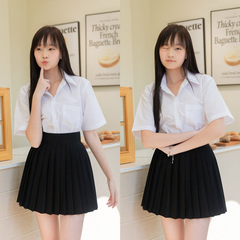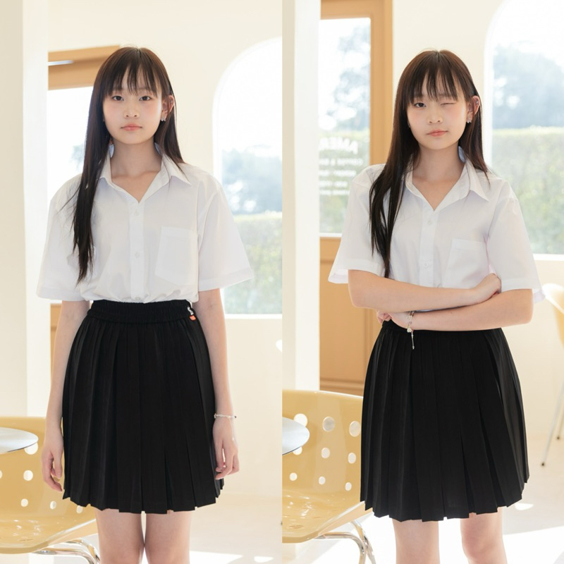 เสื้อนักศึกษาทรงบอยมีกระเป๋า (Oversize) เสื้อนักศึกษา Sz.s36-56