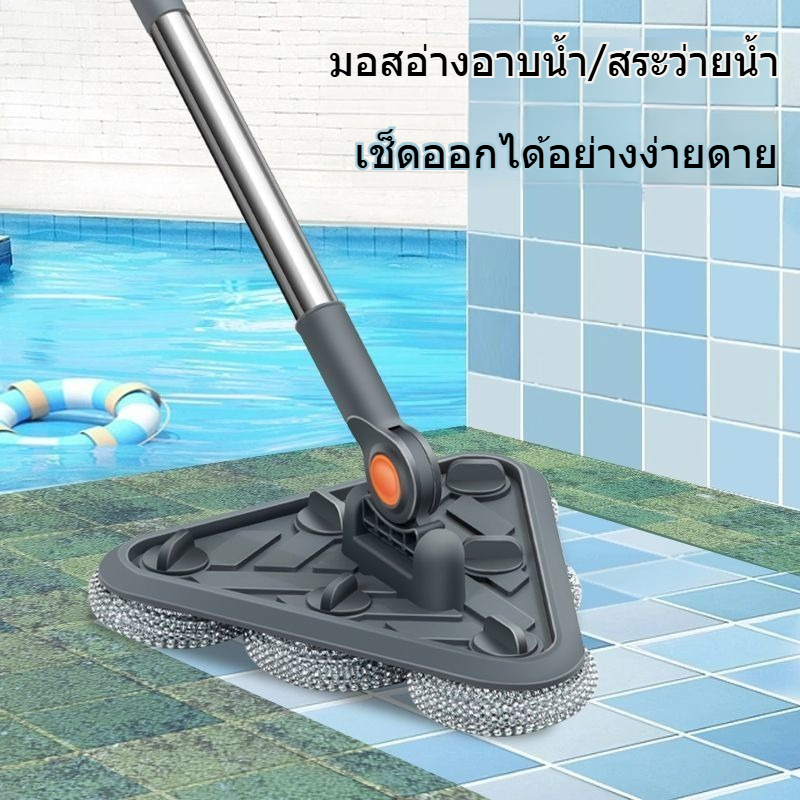 HLHB✨แปรงทำความสะอาดหัวสามเหลี่ยมลวดสแตนเลส 126cm ไม้ถูพื้น แปรงล้างห้องน้ำ แปรงขัดพื้น กำจัดคราบฝังแน่น สระน้ำ พื้นสระ