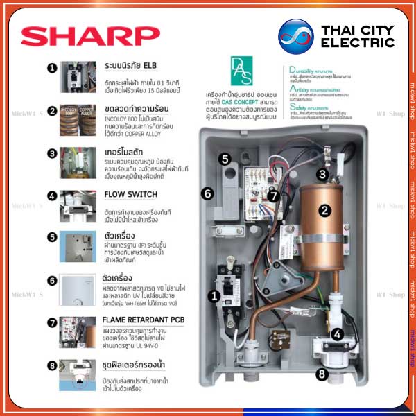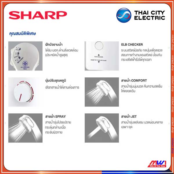 Sharp เครื่องทำน้ำอุ่น 3500W ชาร์ป รุ่น WH-34 มีเบรกเกอร์กันดูดตัดกระแสไฟฟ้ารั่ว