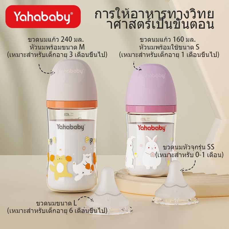 YAHABABY ขวดนมแก้ว ฐานกว้าง ขวดนม ปลอด BPA 160ML/240ML/5/8oz ป้องกันท้องอืด ป้องกันการสำลัก
