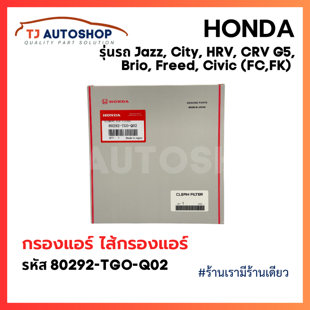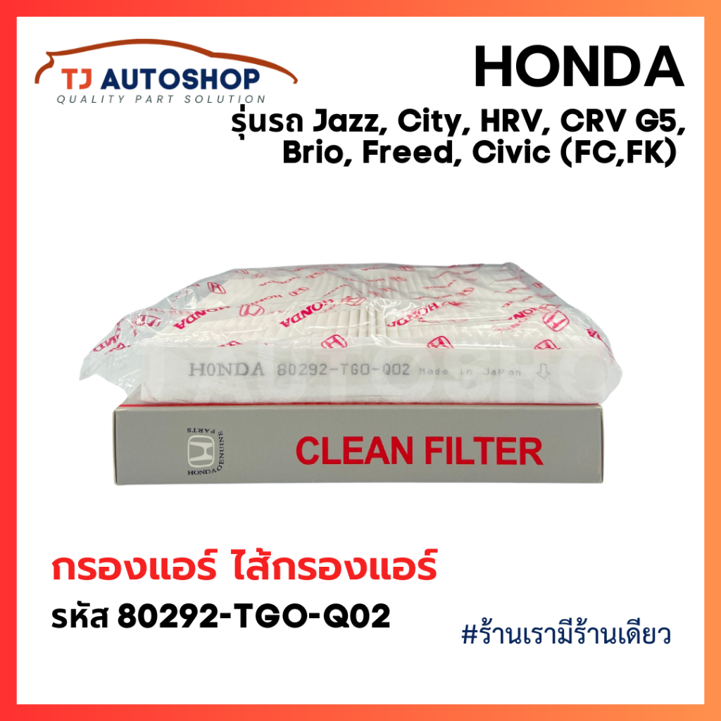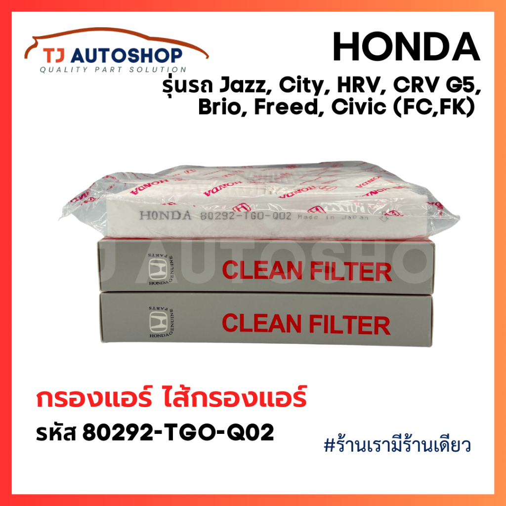 ❗️ใหม่❗️กรองแอร์ ฮอนด้า HONDA CITY, JAZZ, HRV, BRV, Brio, Freed, CRV G5, Civic(FC,FK) รหัสแท้ 80292-TGO-Q02