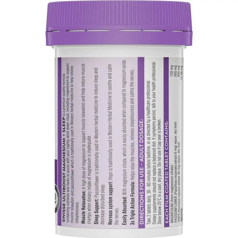 Swisse Ultiboost Magnesium + Sleep 120 Tablets แมกนีเซียมช่วยการนอนหลับ ลดการนอนหลับไม่สนิท