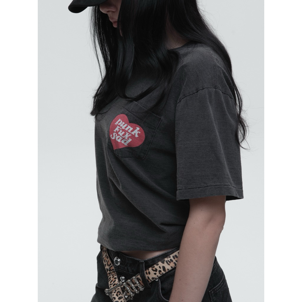 'PFS' Black Faded Pocket Tee
