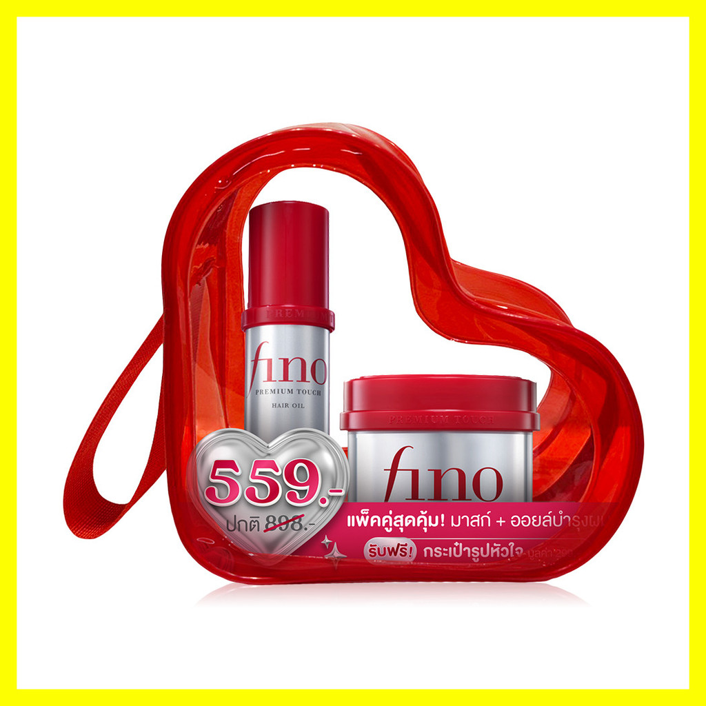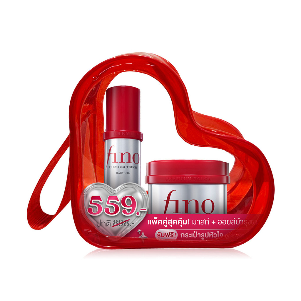FINO Heart Bag Premium Touch Hair Mask 230g + Hair Oil Free 70ml เซทมาสก์และออยล์บำรุงผม ฟีโน่ ช่วยฟื้นบำรุงผมเสีย.
