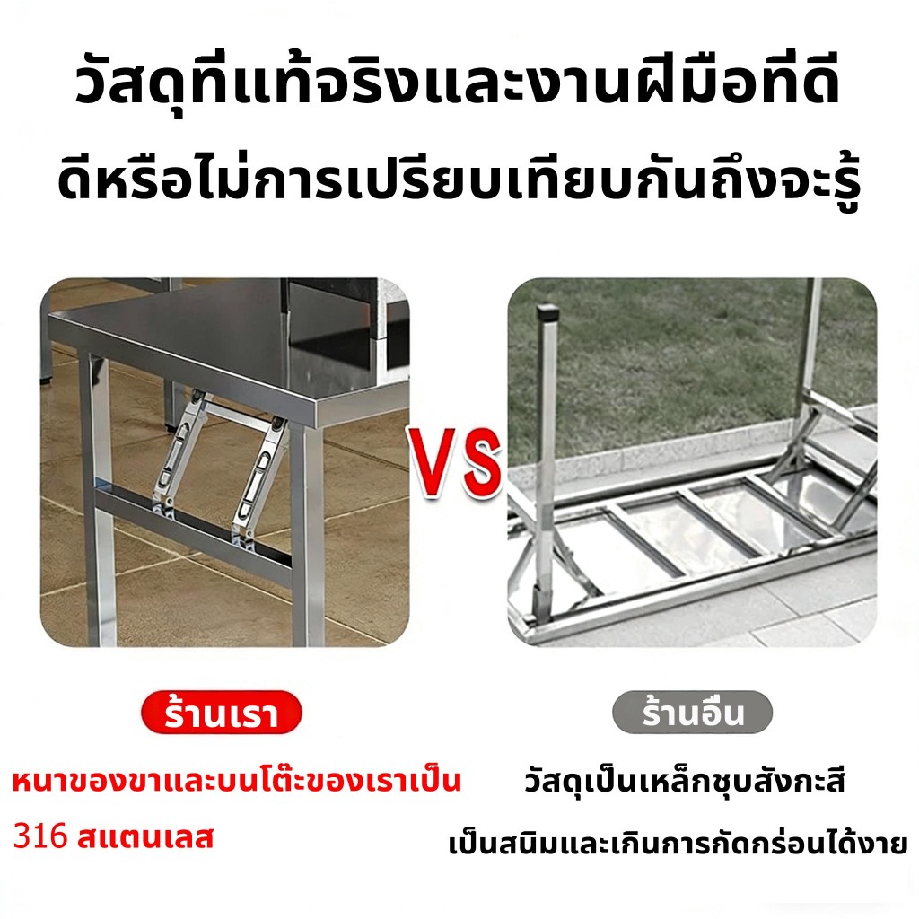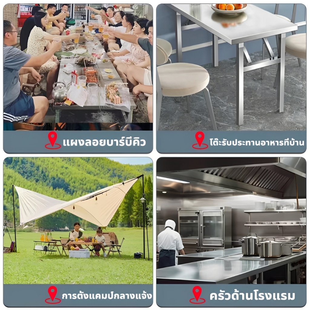 [304 เกรดอาหาร] ไม่เป็นสนิม โต๊ะอาหาร โต๊ะพับสแตนเลส สแตนเลส โต๊ะอาหาร โต๊ะพับ โต๊ะทานอาหาร โต๊ะครัว อเนกประสงค์โต๊ะยาว