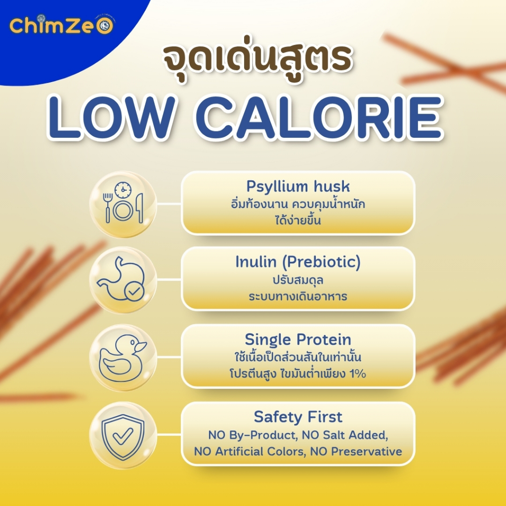 ChimZeO ขนมสุนัขเพื่อสุขภาพ สูตร Low Calorie เนื้อเป็ดแท้ ไขมันต่ำ สำหรับสุนัขแพ้ง่าย (60g)