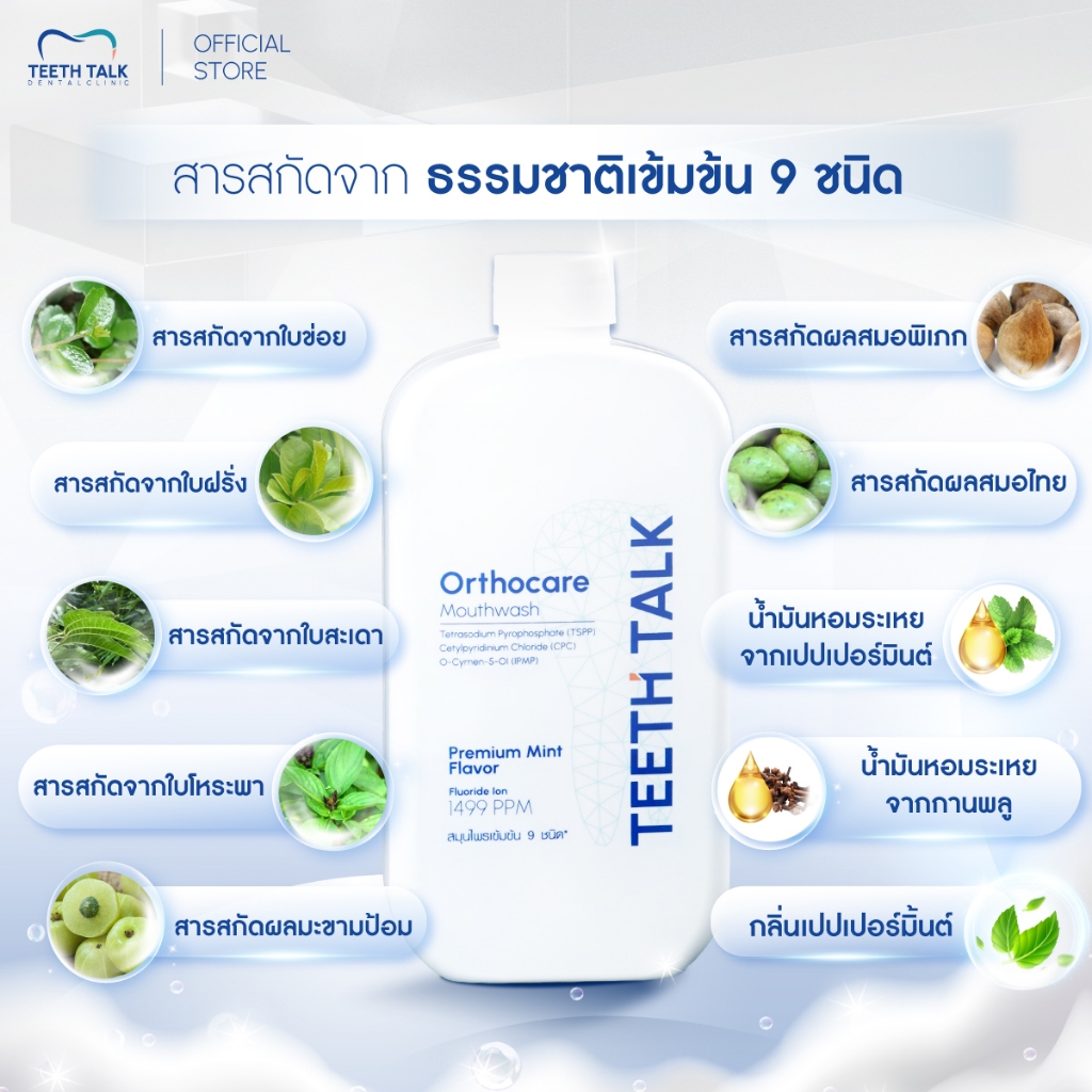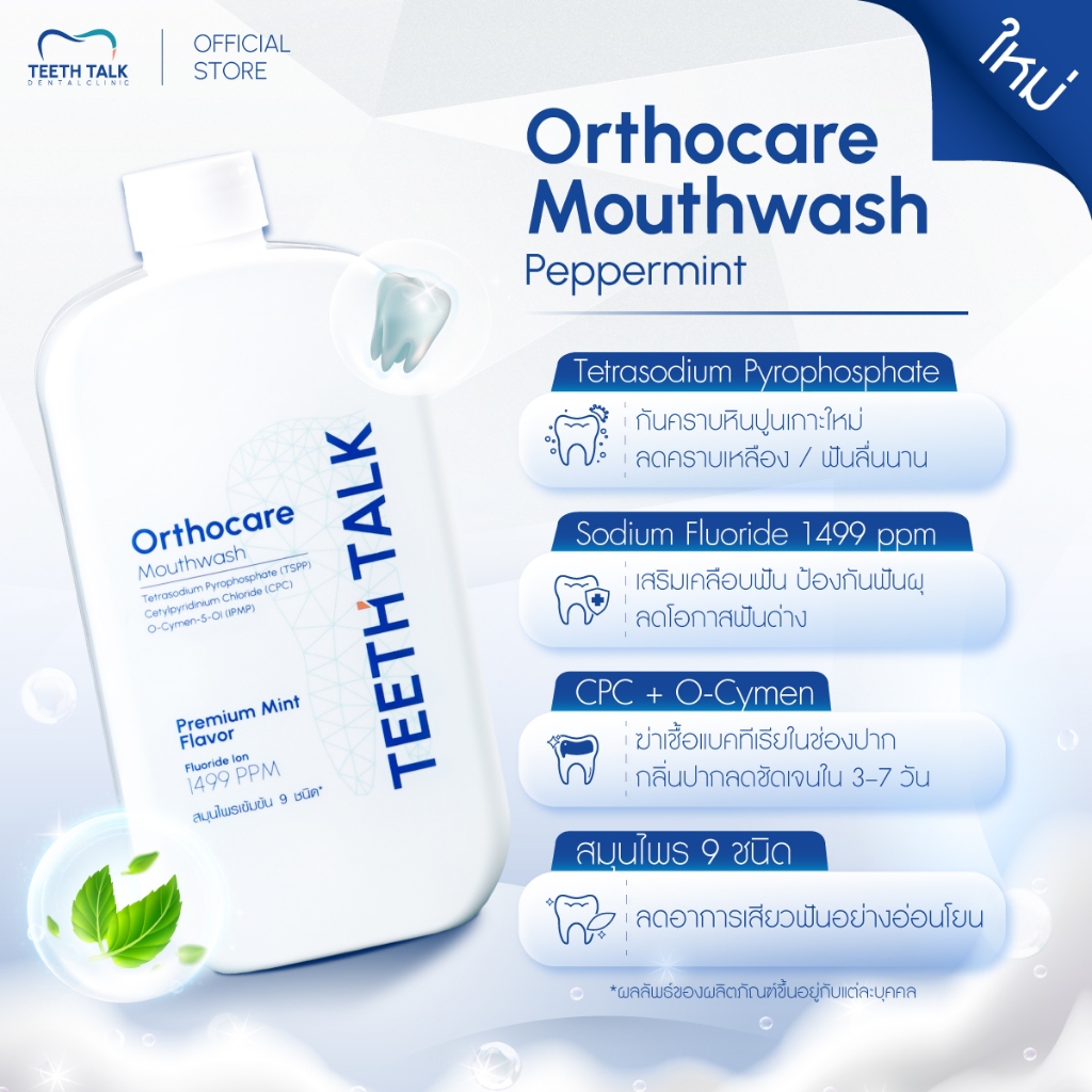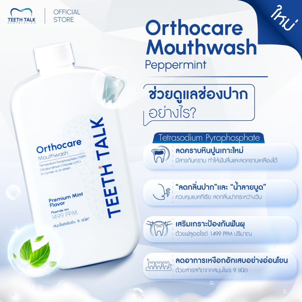 Teeth Talk Orthocare Mouthwash น้ำยาบ้วนปาก สูตรคลินิก ลดกลิ่นปาก ลดคราบ ฟันลื่น ป้องกันฟันผุ เหมาะสำหรับคนจัดฟัน